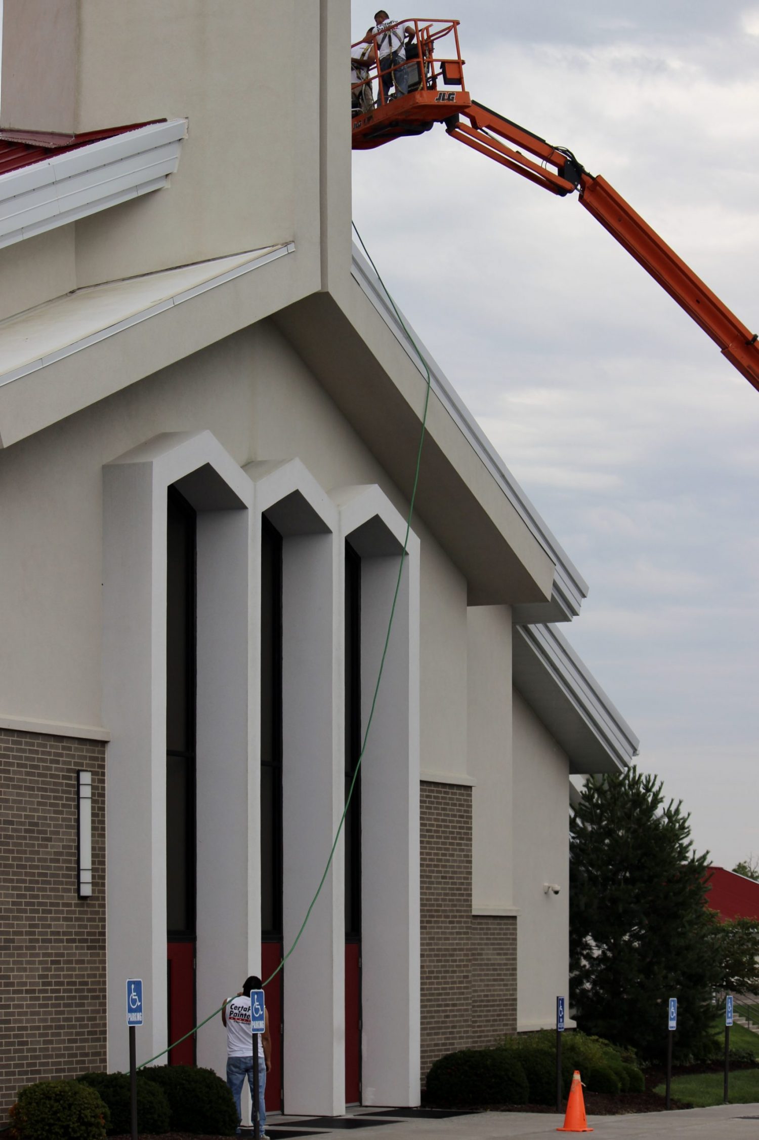Before our team could start power washing the surface, we had to make sure the roof and other areas not being worked on were protected. Once power washing was completed, the commercial painting crew began repairing small holes in the EIFS (exterior insulation and finish systems) to protect the building from the elements and prevent leaking as well as moisture buildup within the wall cavity. Due to the many activities hosted at the church, our team made sure to work around the church’s schedule in order to minimize disruptions and complete the job in time for their main services on Sunday.