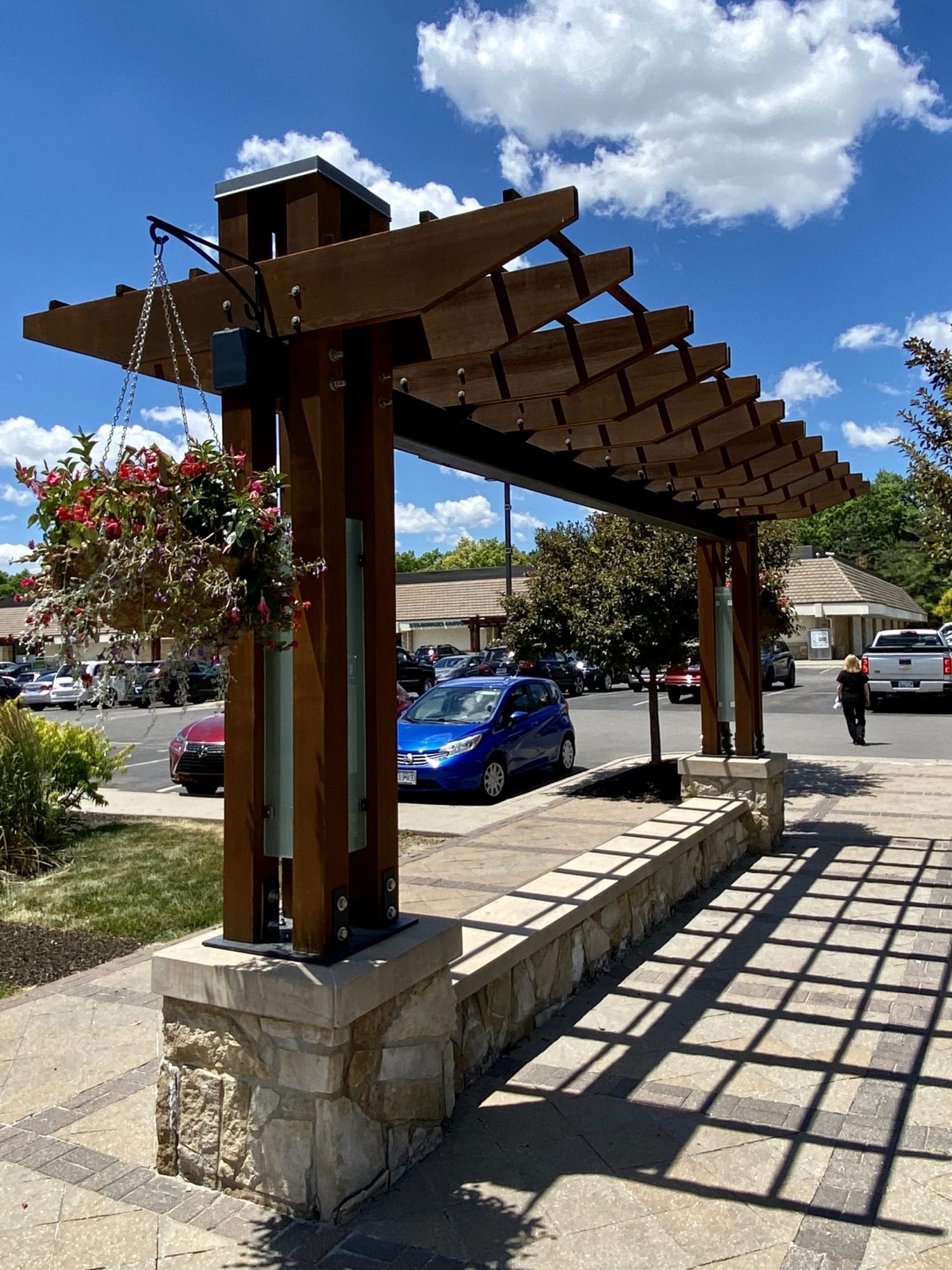 Due to the heavy foot traffic, our team worked early in the morning and late at night when things were shut down to power wash the center. During store hours, the team was able to complete staining on woodwork in certain locations that were low impact. For one particular major grocery store located in the shopping center, the team had access to one entrance and exit during the day. To help minimize disruptions and allow the store to remain open, a plastic tunnel was built so the team could continue to work.