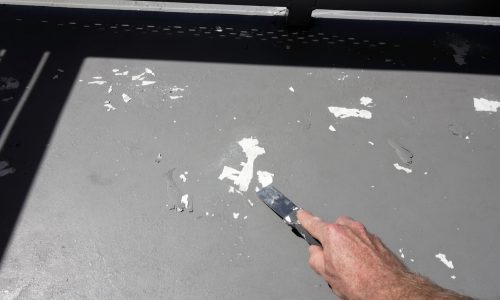 Any loose paint is scraped, glossy areas are scuff sanded and any gaps are caulked to prevent water intrusion.