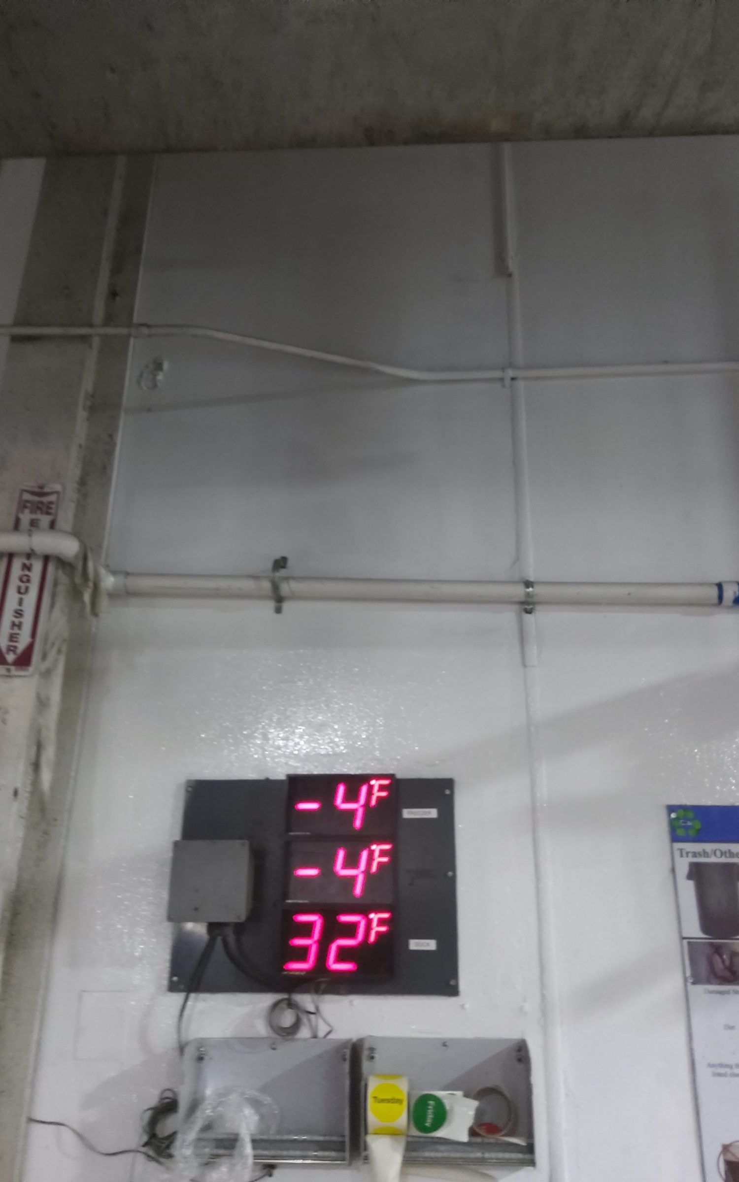 There was plenty of wall equipment the crew had to navigate around throughout the freezer.