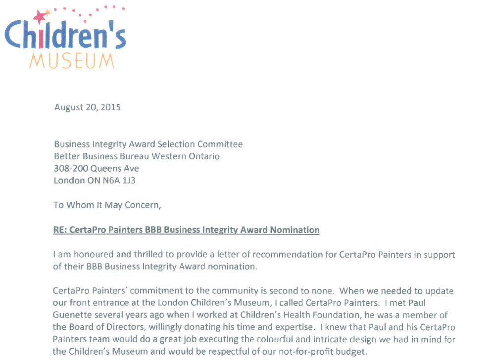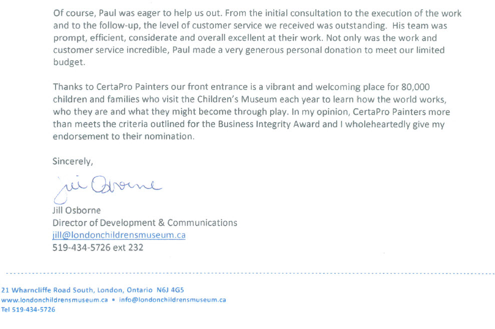 CertaPro Painters was happy to provide a first-rate painting experience to the Children’s Museum in London, Ontario. CertaPro strives to make a difference in our community!