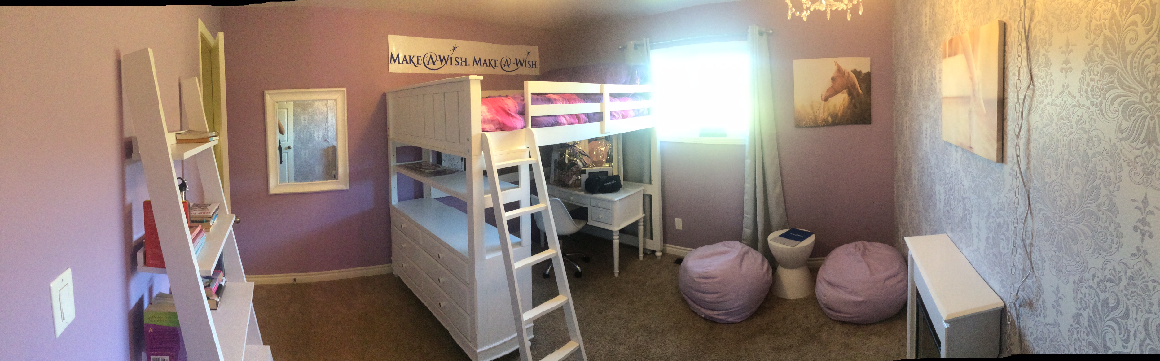 Eva was so surprised when she arrived home yesterday from her weekend spent at her grandparents. Her mouth dropped and she was speechless when she saw her dream vision of a bedroom come to life! She was so happy and grateful of her new space. It was everything she dreamed of and more!