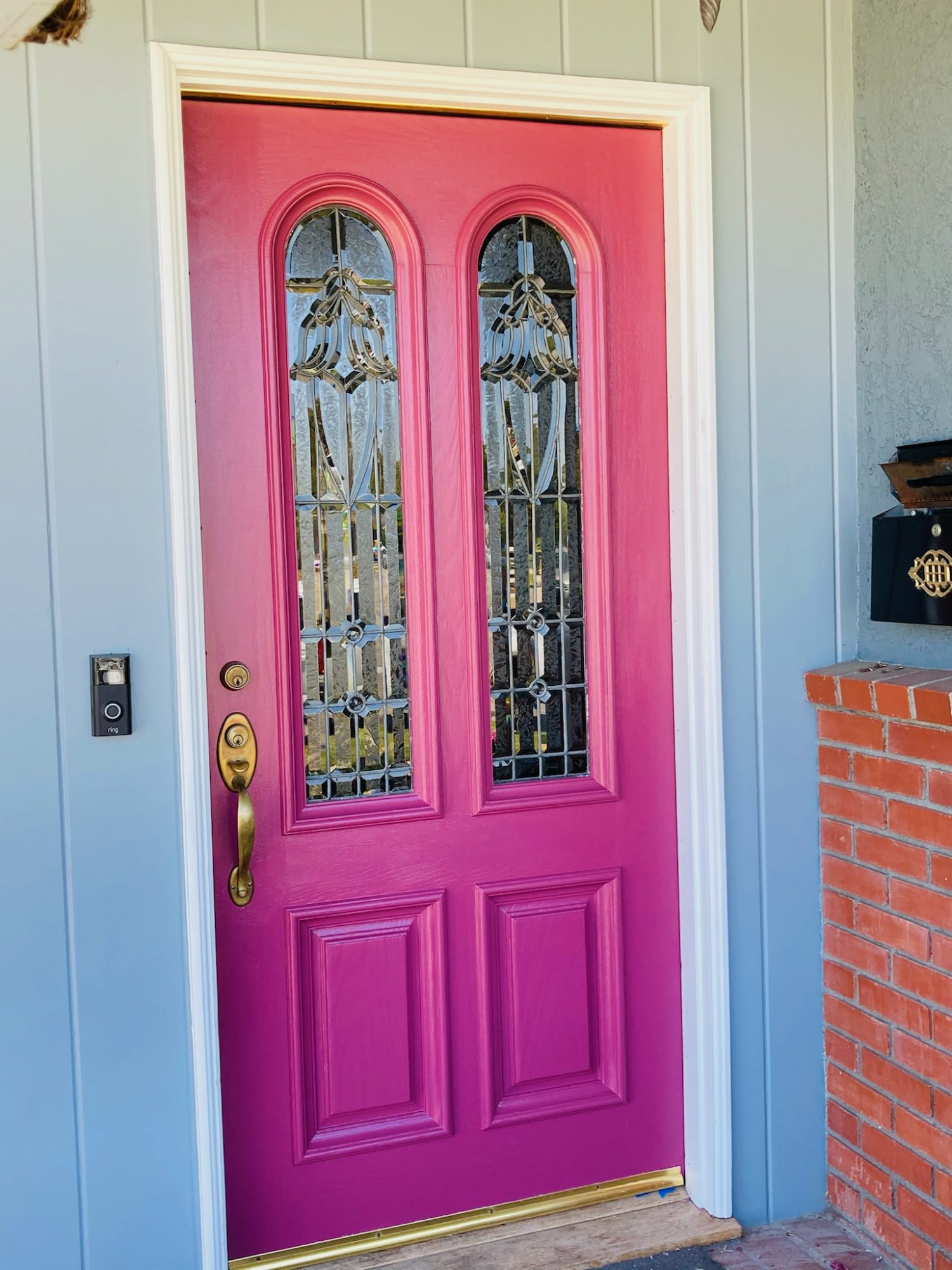 Give this front door a careful look, not only is it painted in a stand-out color but it’s painted as a gradient going from dark near the bottom to light near the top.