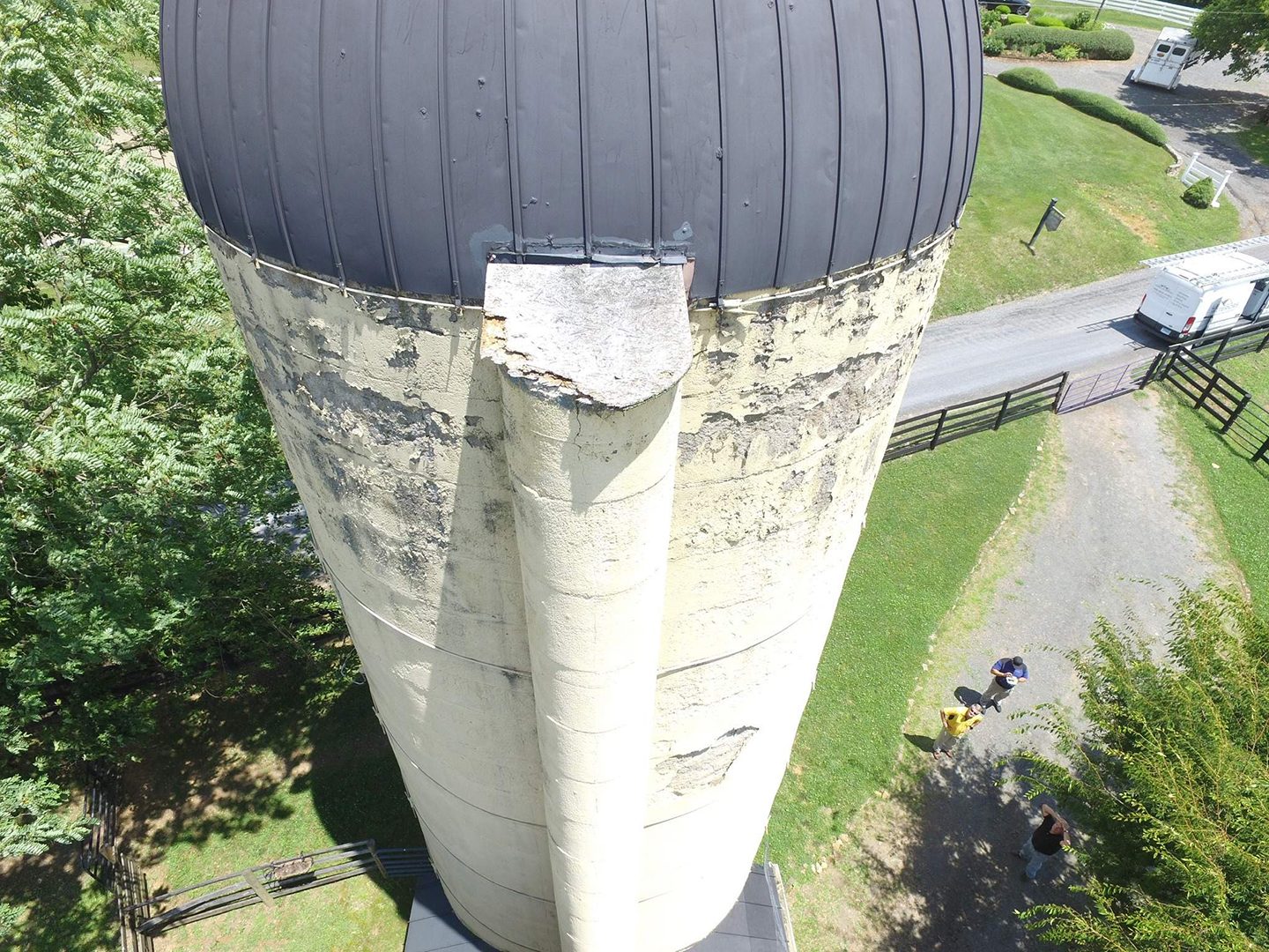 - The silo had a significant chunk that had fallen off that needed to be repaired.