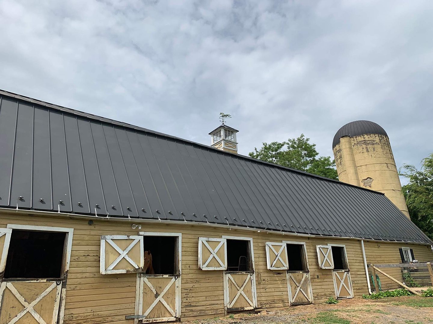 Repaired and painted a barn and silo in Paeonian Springs, VA. This project consisted of repairing 2 cupolas as well as a number of other areas around the barn. We also had to parge the concrete on the silo to repair a hole as well as several damaged areas. The crew prepped and painted both the silo and the barn.
