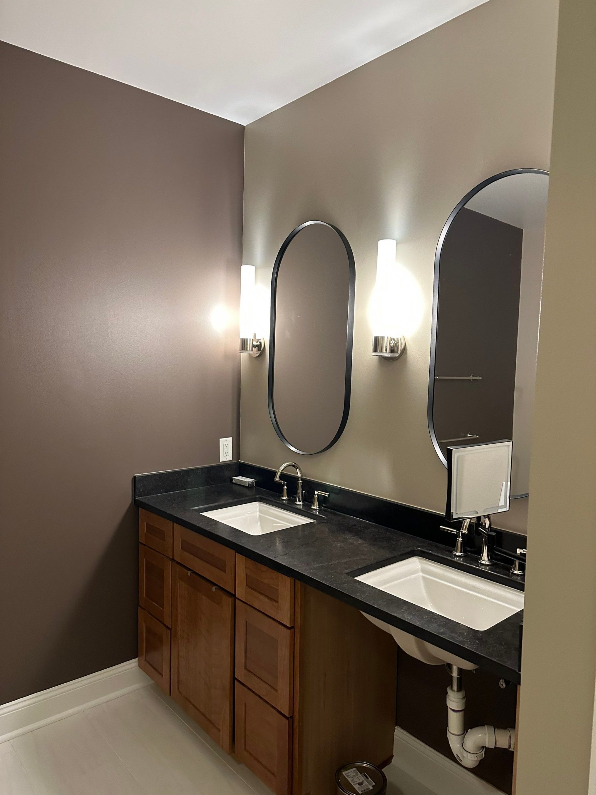 This commercial HOA bathroom wanted a professional update. Our team painted the interior with a beautiful brown shade and a darker tone for an accent wall. The results look great!