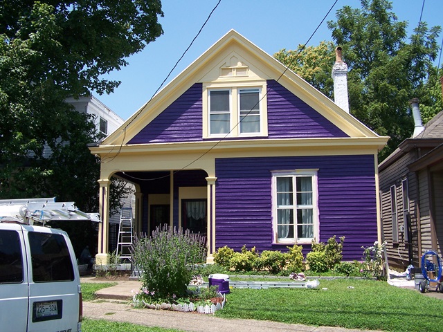 The CertaPro Painters of Louisville team recently repainted a wonderful little home in Louisville that had gone unnoticed for years. We worked together with the homeowners to increase this charming home’s curb appeal. This project was completed in a “three coat system.” We repaired as many cracked/rotten boards as financially feasible, along with scraping all of the loose and peeling paint and caulking of all vertical seems. After all of the prep work was completed, the home was primed with Pro Block by Sherwin Williams (50% tint Concord Grape – SW6559), then followed by two complete coats of Sherwin Williams Resilience. The trim was painted in Humble Gold (SW6380).