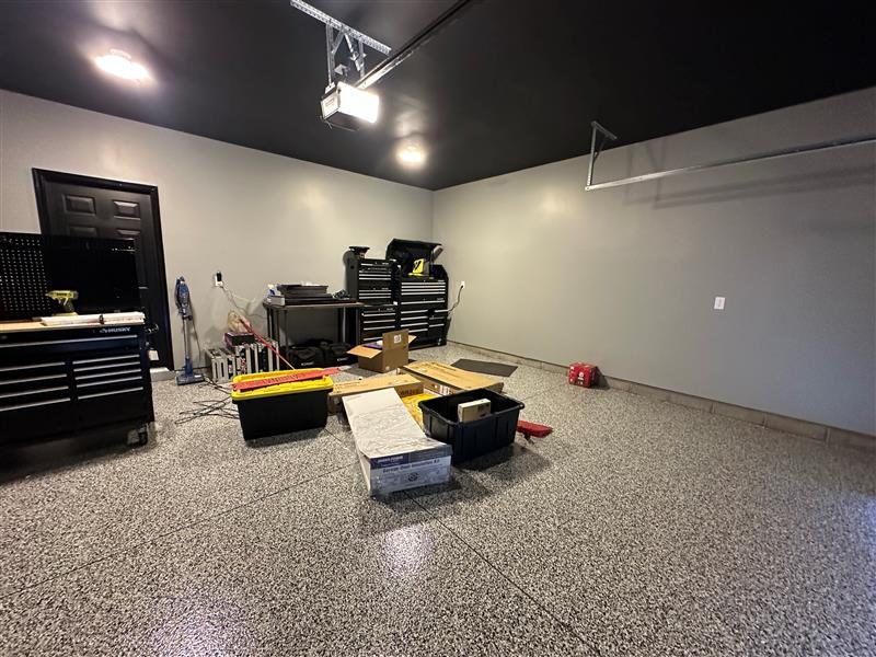 Finish drywall work, painted ceiling and door black, walls went Anew Grey from Sherwin-Williams.