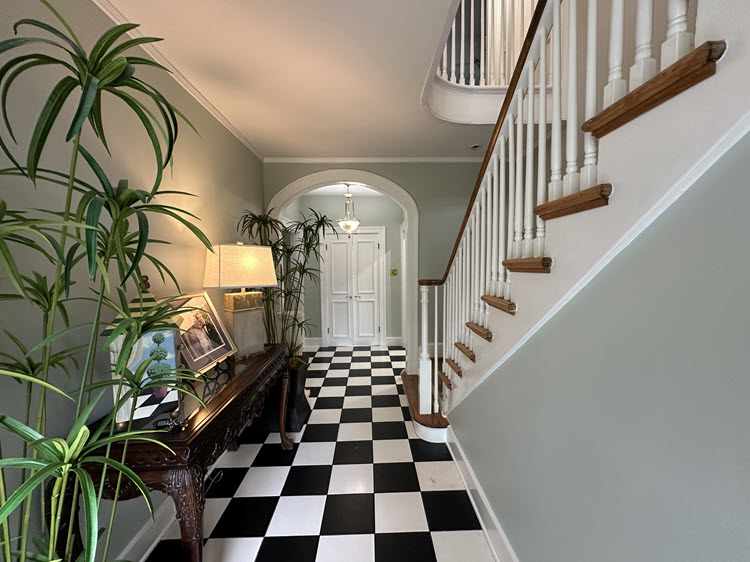 We brightened the foyer using SW6204, Sea Salt, on the walls.