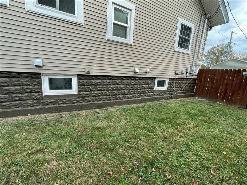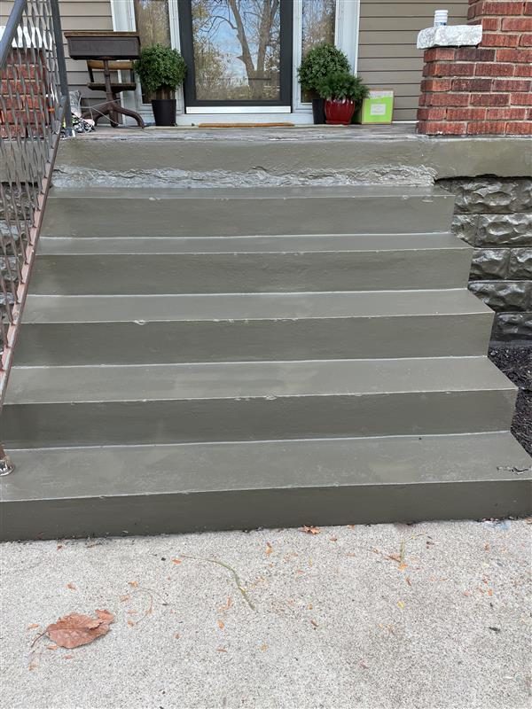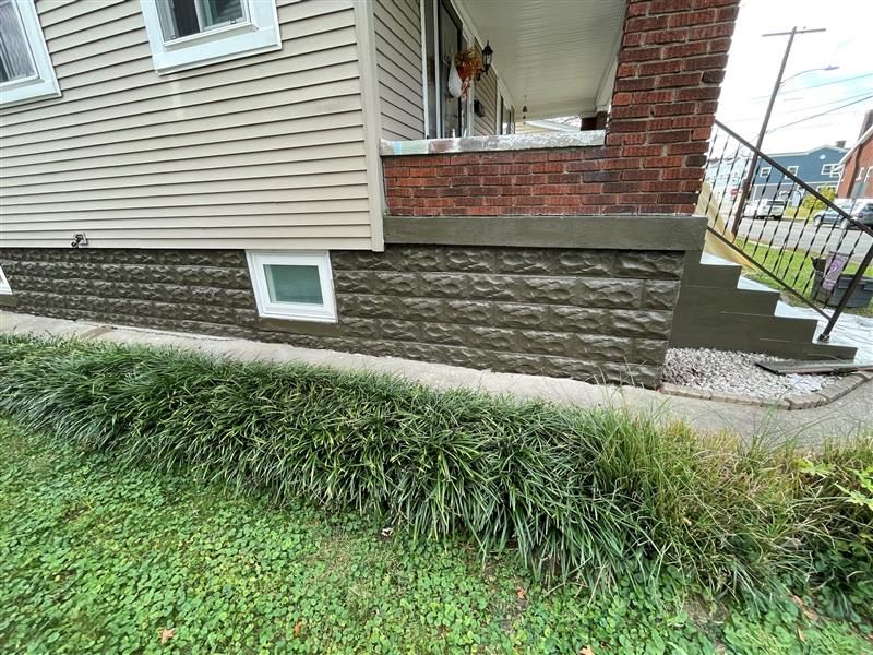 Painted the foundation with Duration Satin (Loxon Primer), a Valspar match to their Turkish Coffee stained porch.