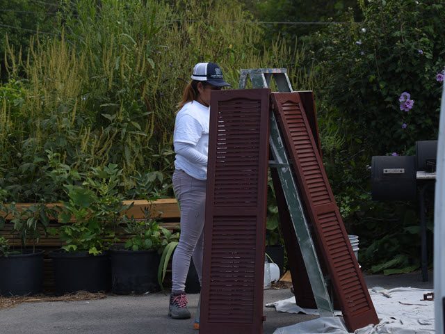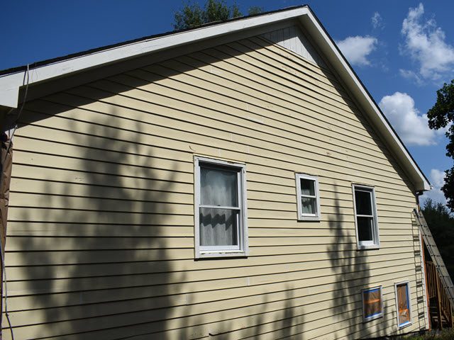 In September 2023, A family in Louisville hired us to refresh the exterior of their home. The house was last painted quite some time ago and the yellow was pretty faded and starting to chip. The window and door trim, along with the window shingles, were also weathered. This project would require some carpentry work and the use of heavy ladders – our team was up for the challenge. Equipped with the customer’s paint of choice and our drills, saws, and ladders, we got to work.