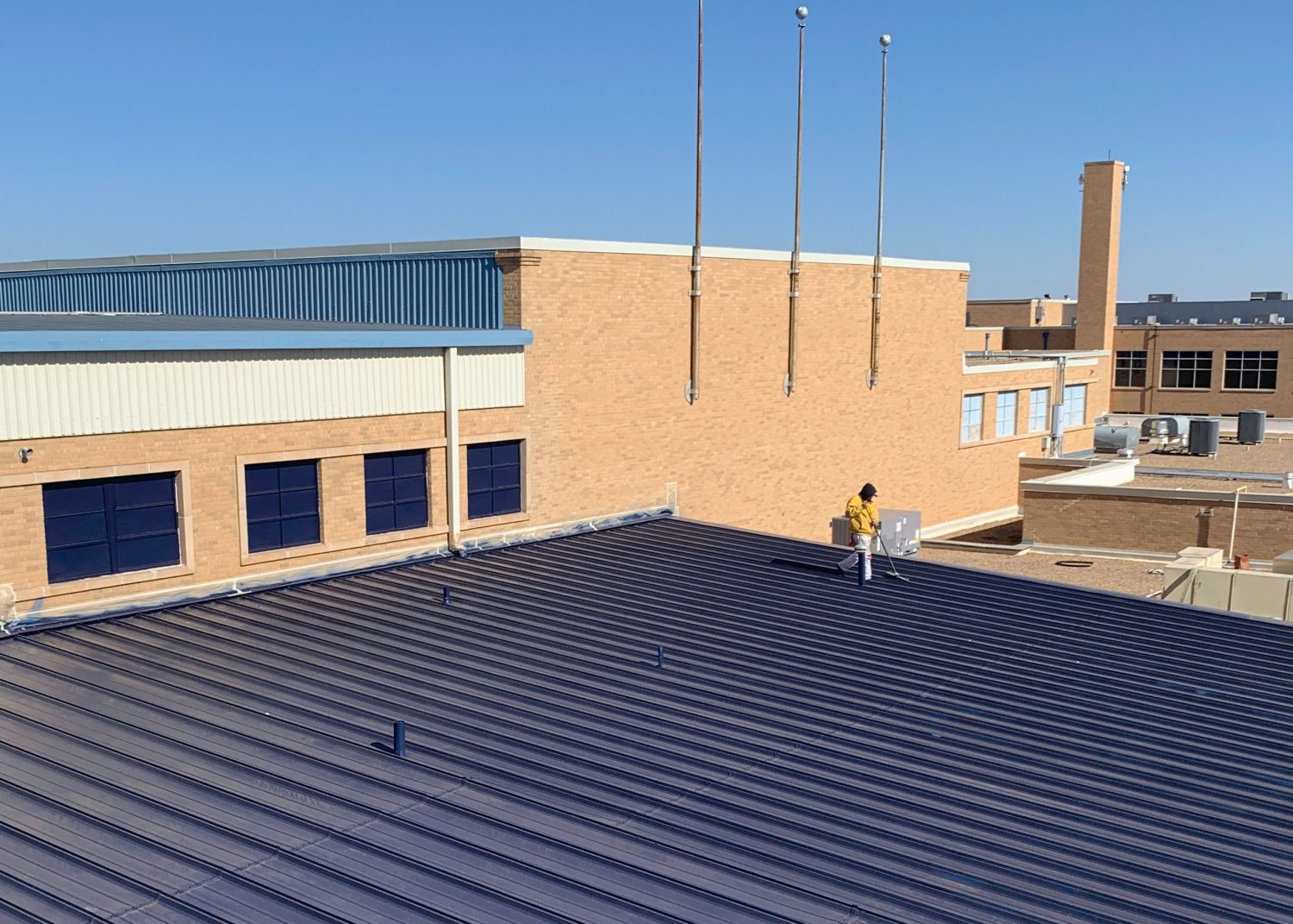 Our painters used a high-performance Sher-Cryl, a Sherwin Williams product, for color retention and adhesion. This way, the school buildings can maintain their new high-quality finish for years to come even with extreme wear and tear. We also utilized special equipment including a 60′ articulating boom lift and scissor lifts.