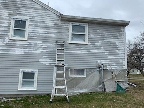 The homeowners requested that the left side of the home be scraped and repainted. The left side endured more damage than the right side due to the weather having more of an effect on that side of the house (i.e. the sun sets on that side).