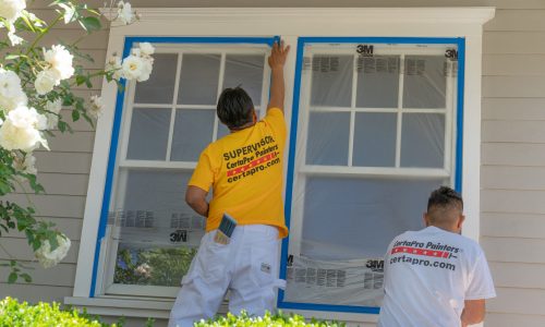 After the surface is clean, we take the time to tape, mask, and cover any areas that shouldn't be painted. In the case that there is overspray, we want to make sure your home and yard are protected.