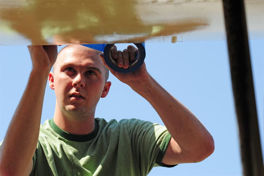 Clearing out the area will protect your belongings from stray drips or splatters. It will also give you the freedom to move about the workspace freely. Scraping, sanding and painting all can cause quite a bit of a mess. Even with the best taping and drop cloths, accidents happen. Moving around your furniture with paint and brushes is just asking for a rogue drip. Completely removing the furniture is best but if it’s not possible, move all of it to the center of the room.