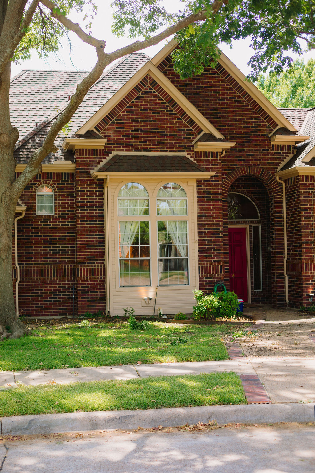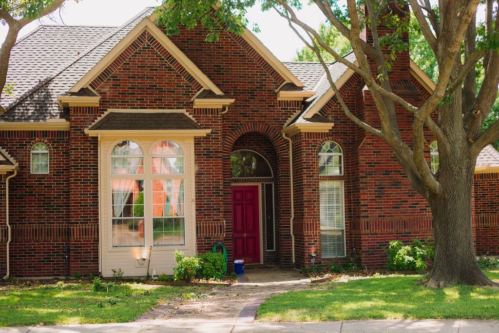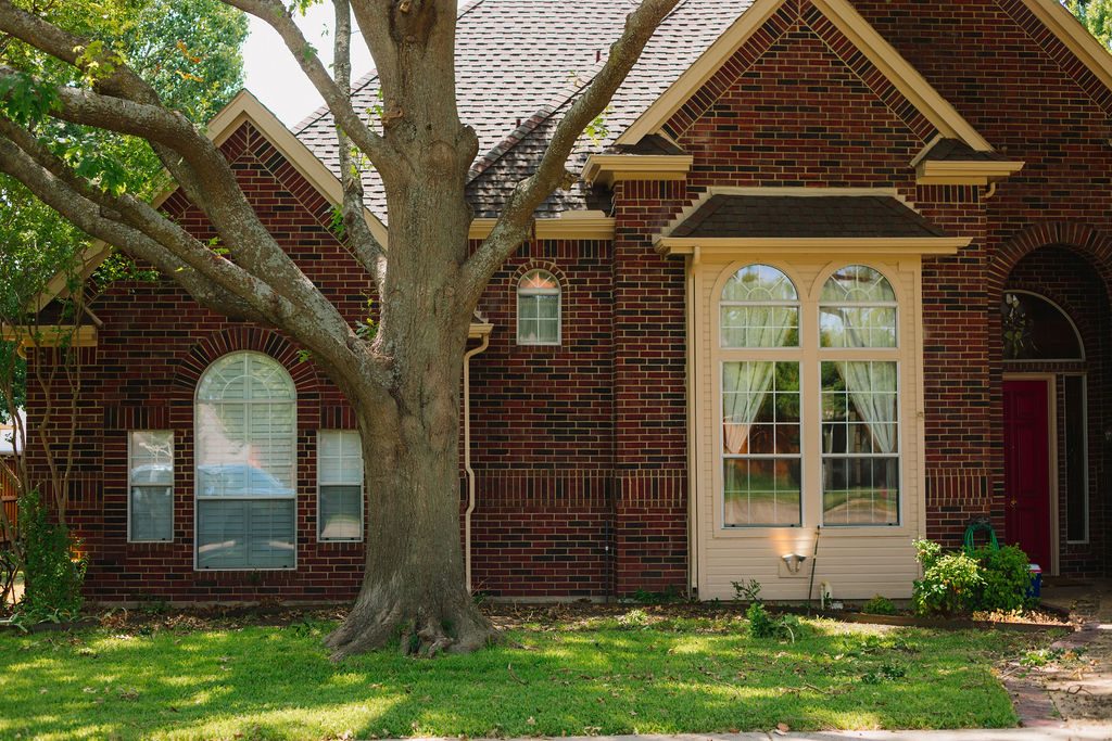 This modern brick stain featured a darker color, giving it some nice contrast to the bright green surrounding the home.