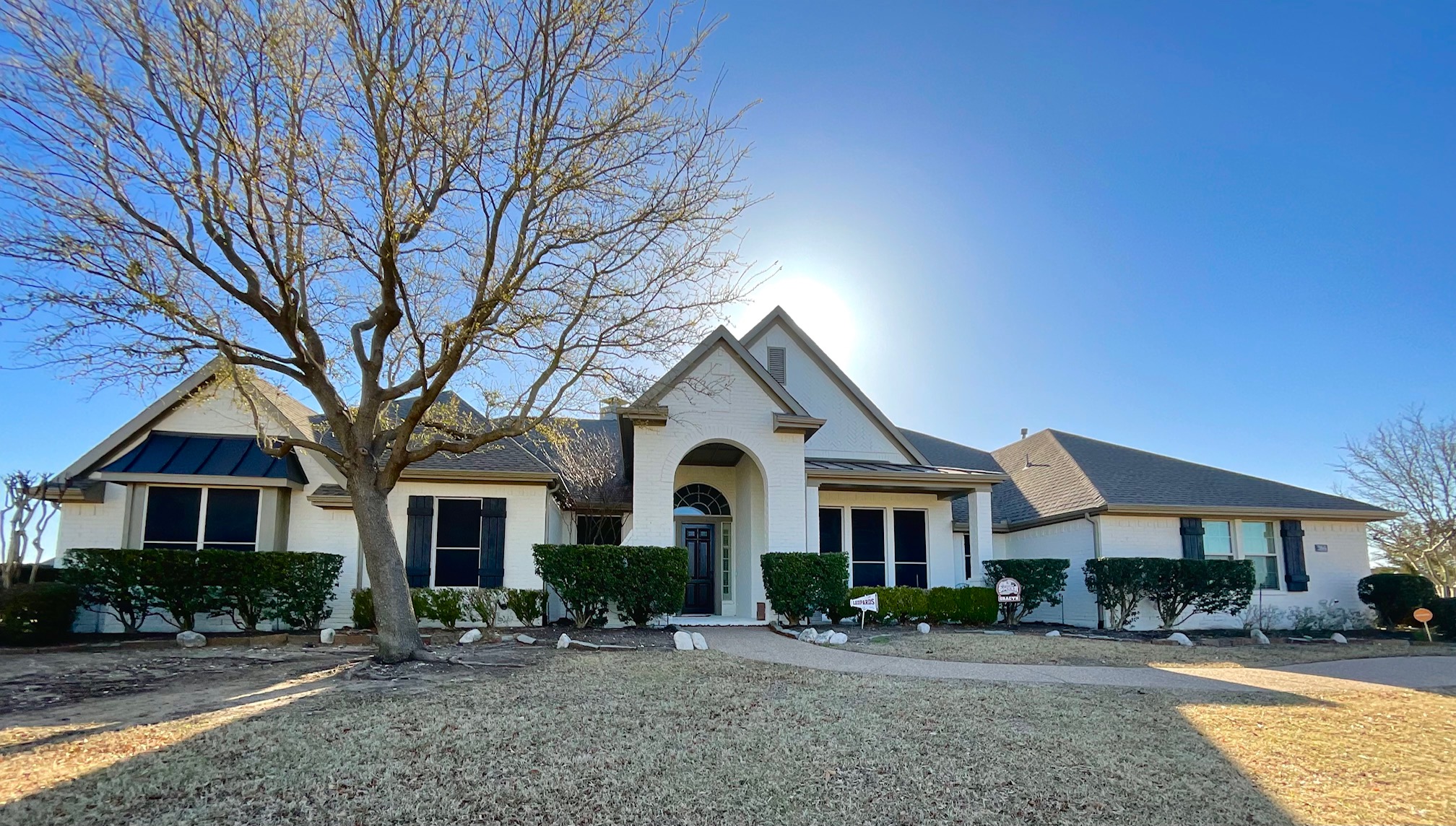A brick exterior painting applied by CertaPro Painters® of Far North Texas. Transforming your brick home with a few coats of paint can massively raise the curb appeal of your property!