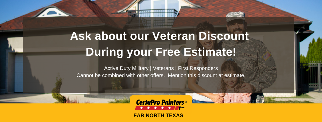 Must provide valid identification to get discount. Inquire at time of estimate. Valid only at CertaPro Painters of Far North Texas.