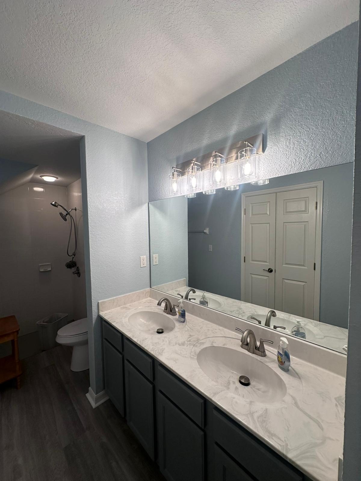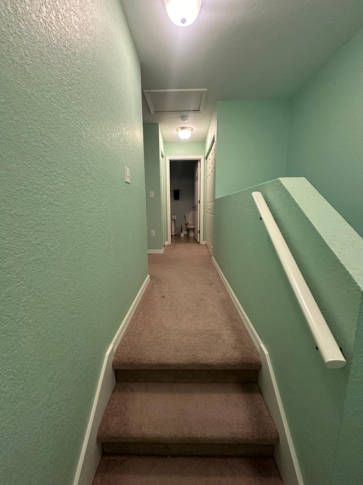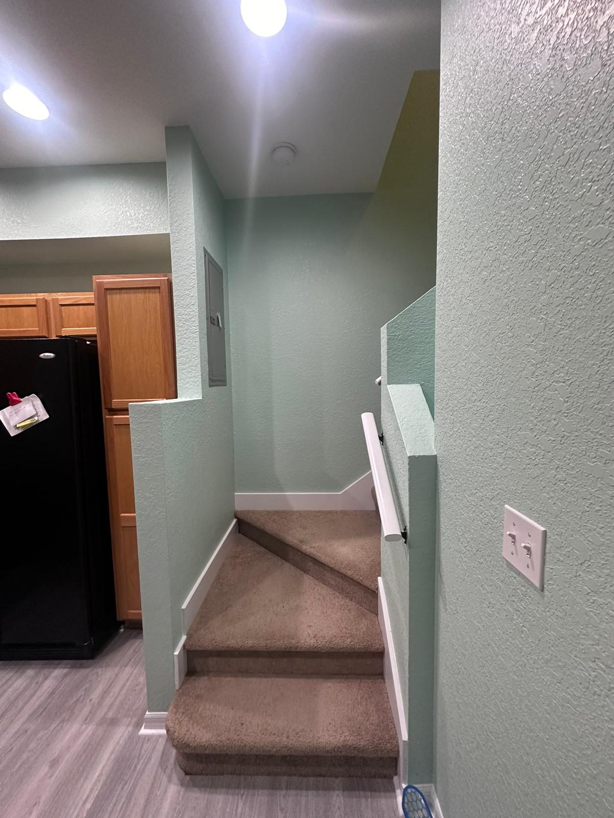 These interior textured walls were recently painted bright new shades by our team of residential painters.