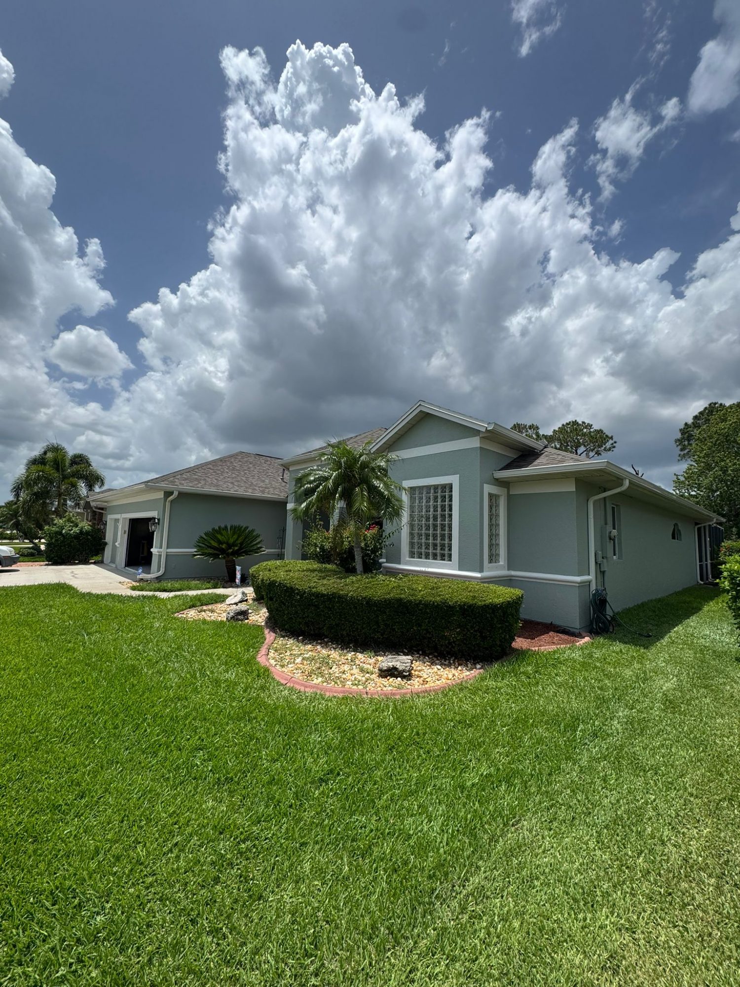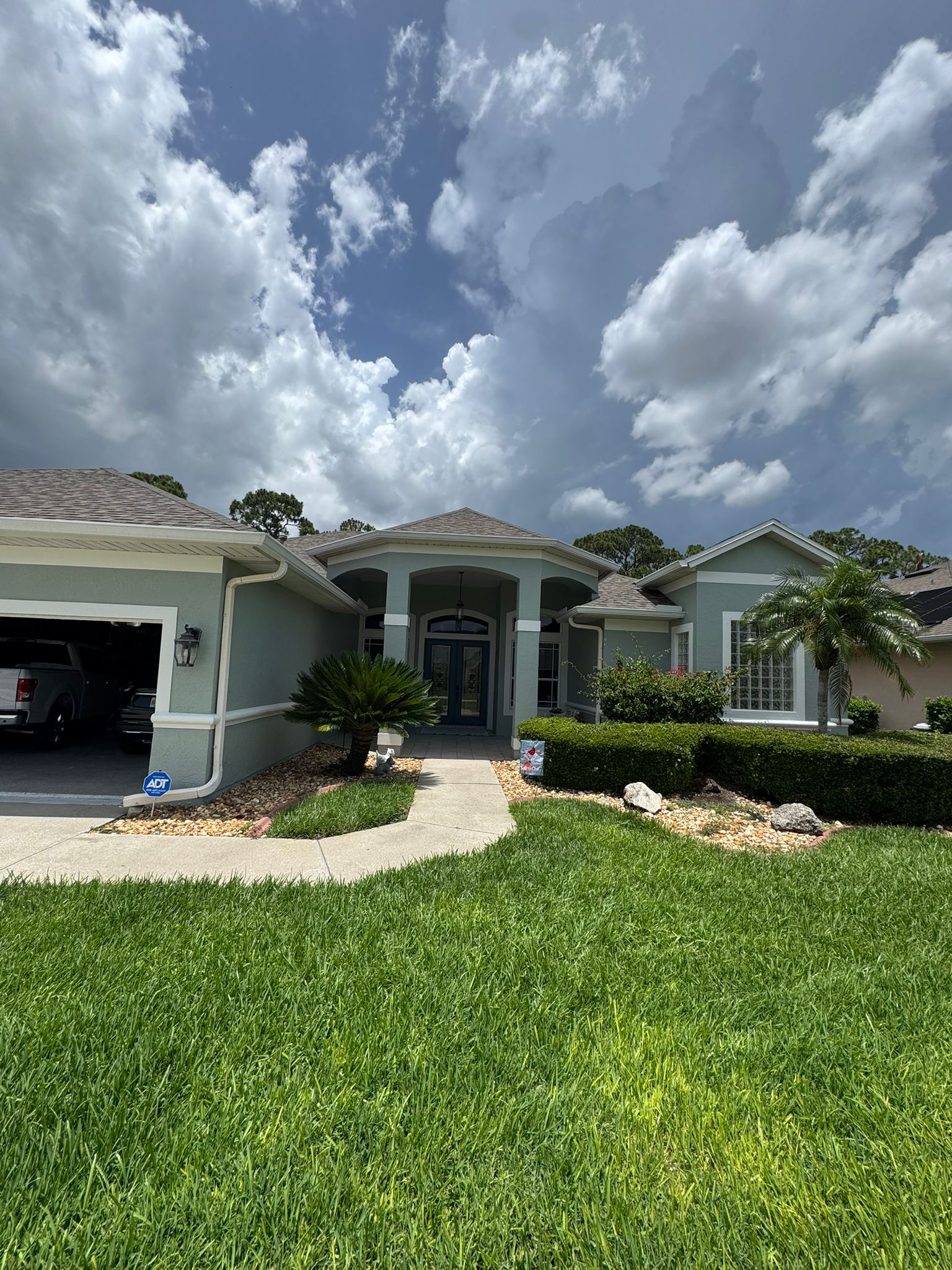This seafoam green exterior was painted by our residential team in Viera.