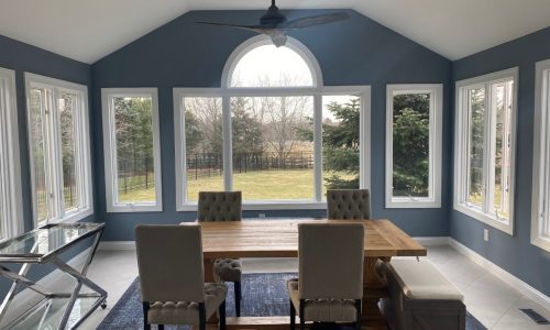 Dining Area repainted from beige to a calming blue color in Belle Mead, NJ.