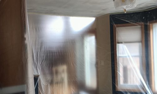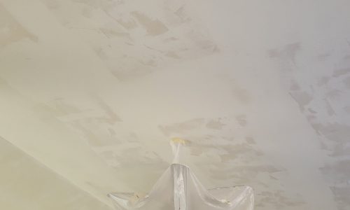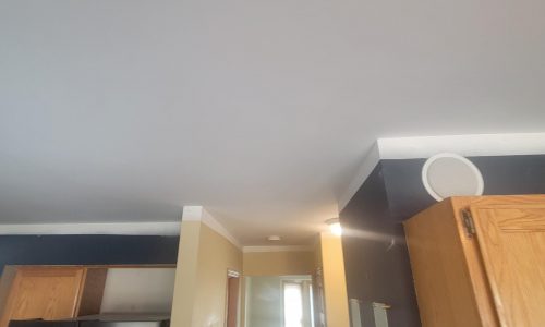 Our team began the project by damping the ceiling surface to soften the existing popcorn texture. This is crucial, as it makes the removal of the texture much easier and less damaging to the underlying drywall. Once the surface is sufficiently damp, the next step involves scraping off as much of the texture as possible. After the texture is scraped off, the next step is applying a layer of skim coating. This is done to cover any remaining imperfections, creating a smooth and even surface across the entire ceiling. Typically, two coats of drywall mud are needed to achieve the desired smoothness. Once the final coat of mud has been applied and sanded, the ceiling is then prepared for painting. The painting stage not only provides a clean and polished look but it also helps seal and protect the new finish.