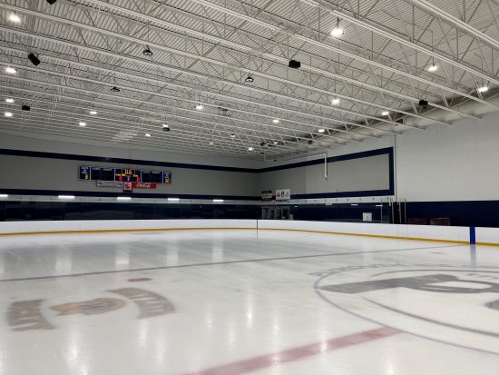 Painting an ice center didn’t come without its own set of unique challenges! Throughout this project, our team had to employ their expert techniques, utilize a 26′ scissor lift, and brave freezing temperatures.