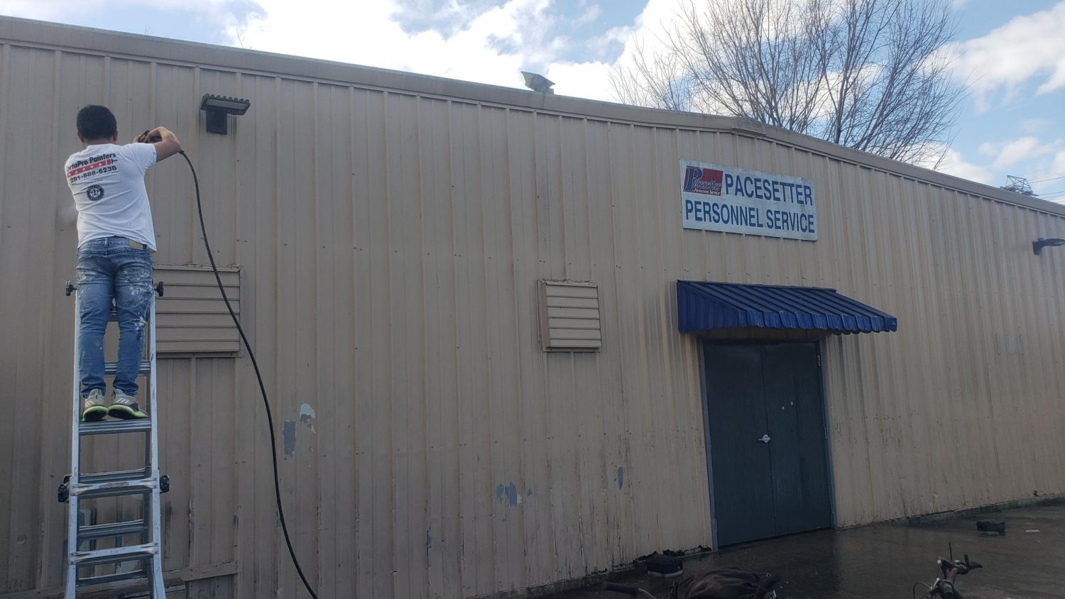 CertaPro Painters of Missouri City was called to paint a metal building in the East Side of Houston, TX. The building is a corrugated metal that was dirty and showed peeling paint in select areas. The team painted prepared the building by pressure washing the structure. To follow up, the bare or pealing areas were sanded and primed with Pro-Industrial Pro-Cryl primer. We chose Pro-Cryl because it has rust-inhibitive properties and is designed for steel, galvanized products, and aluminum. Lastly, The structure was painted with Sherwin-Williams SuperPaint with a satin sheen. We chose to use satin because dirt does not adhere to the surface as compared to flat paint. The sheen in satin paint provides a mirror-like surface profile.