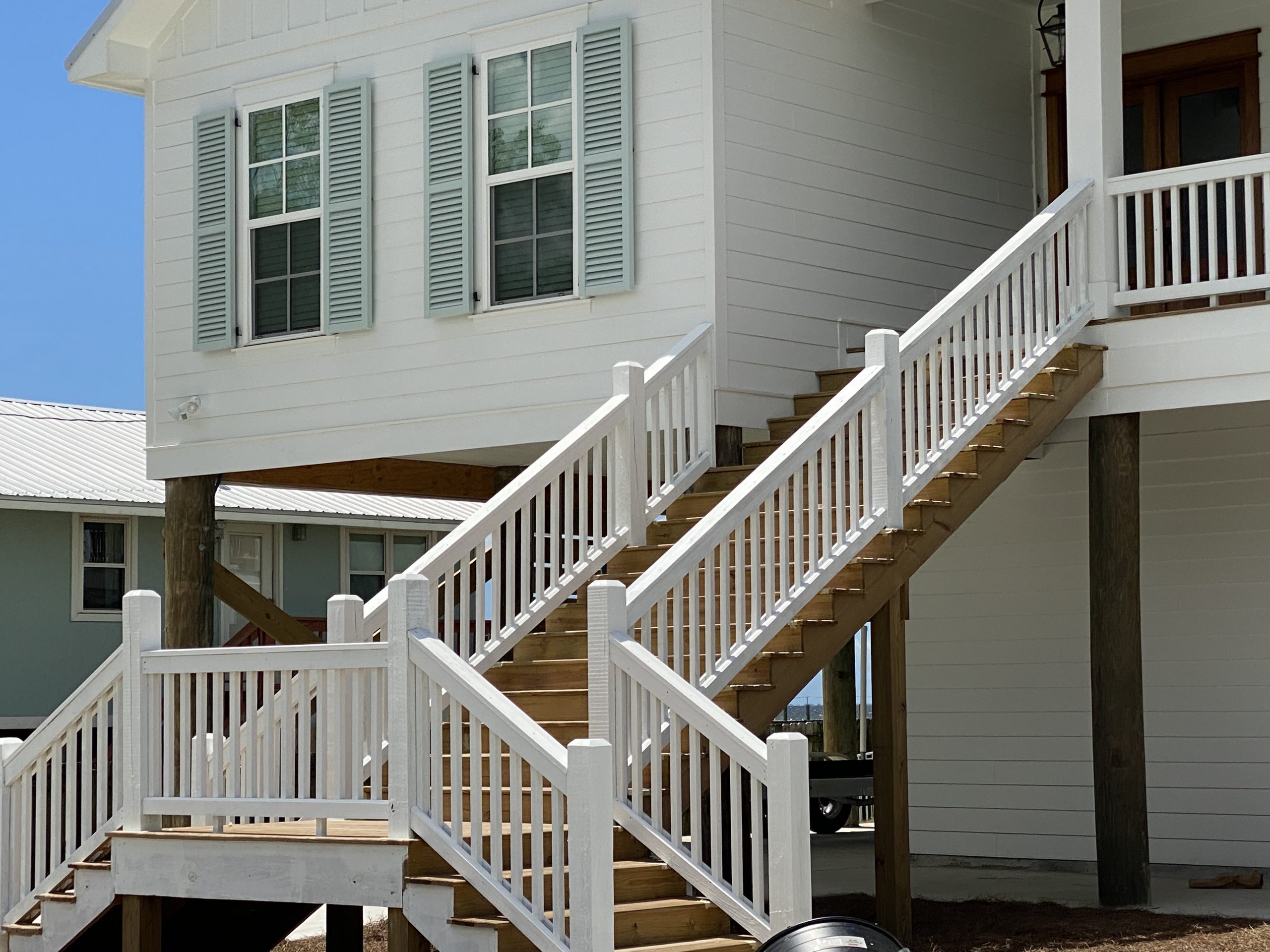 We refinished these decks using a premium semi transparent stain and solid stain.