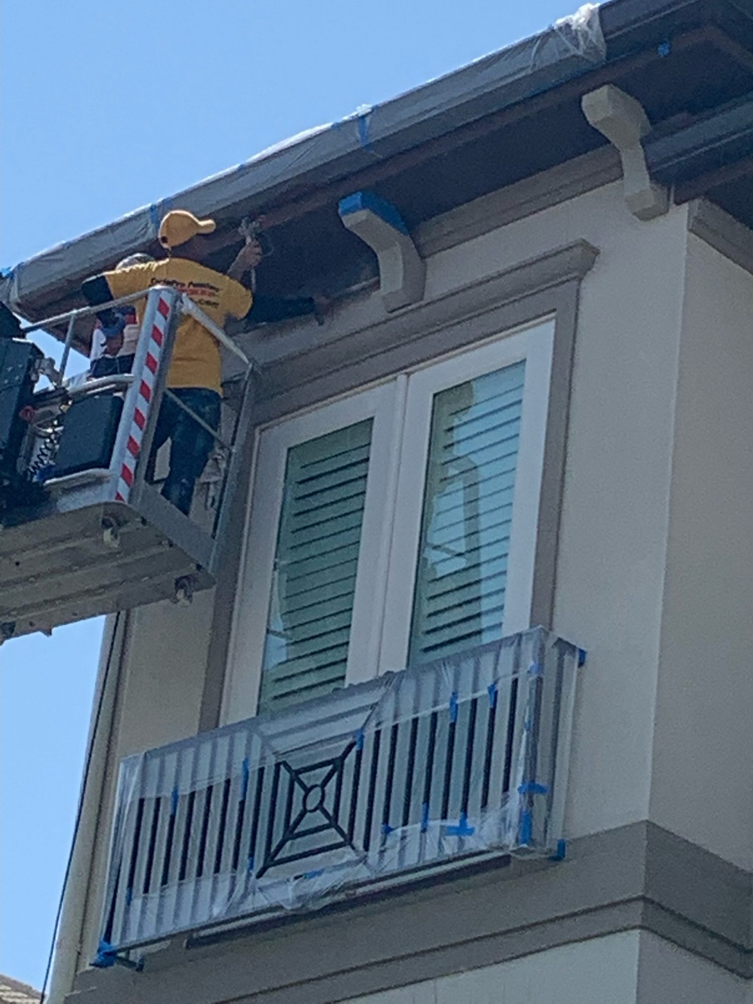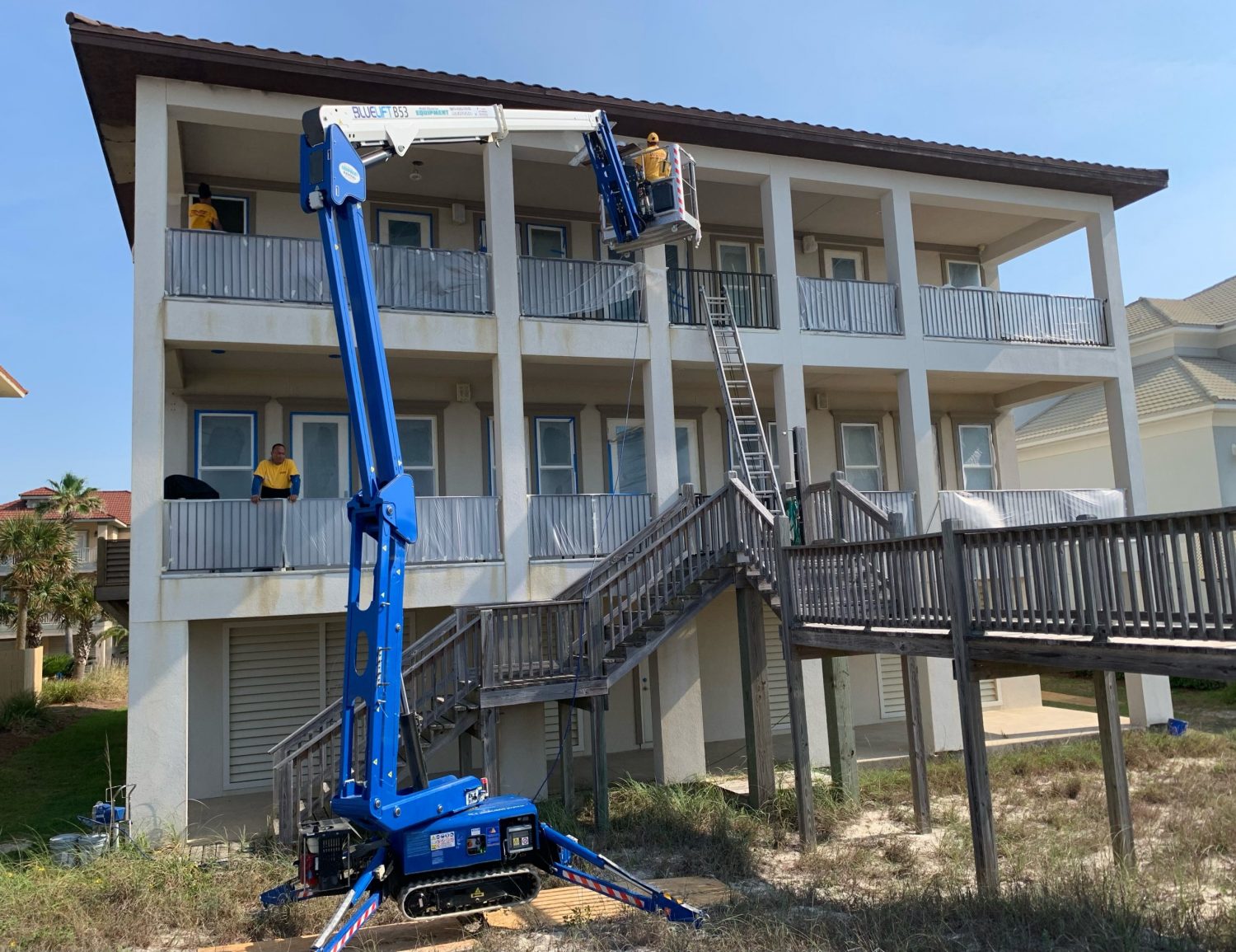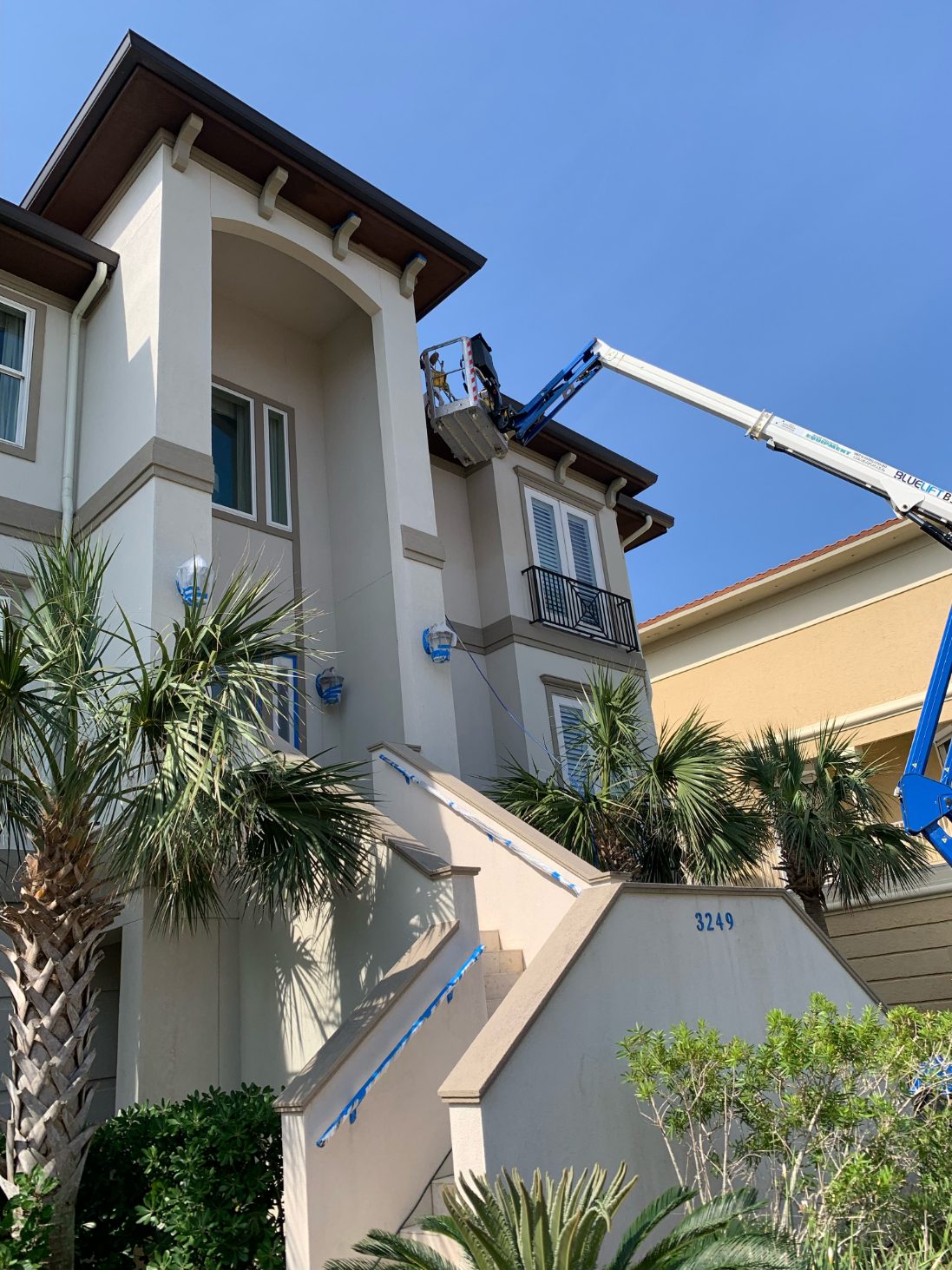Exterior Refresh of a Gorgeous Beachfront Home that included Stucco Repairs, Rust Abatement, and use of an All-Terrain manlift in sandy conditions.