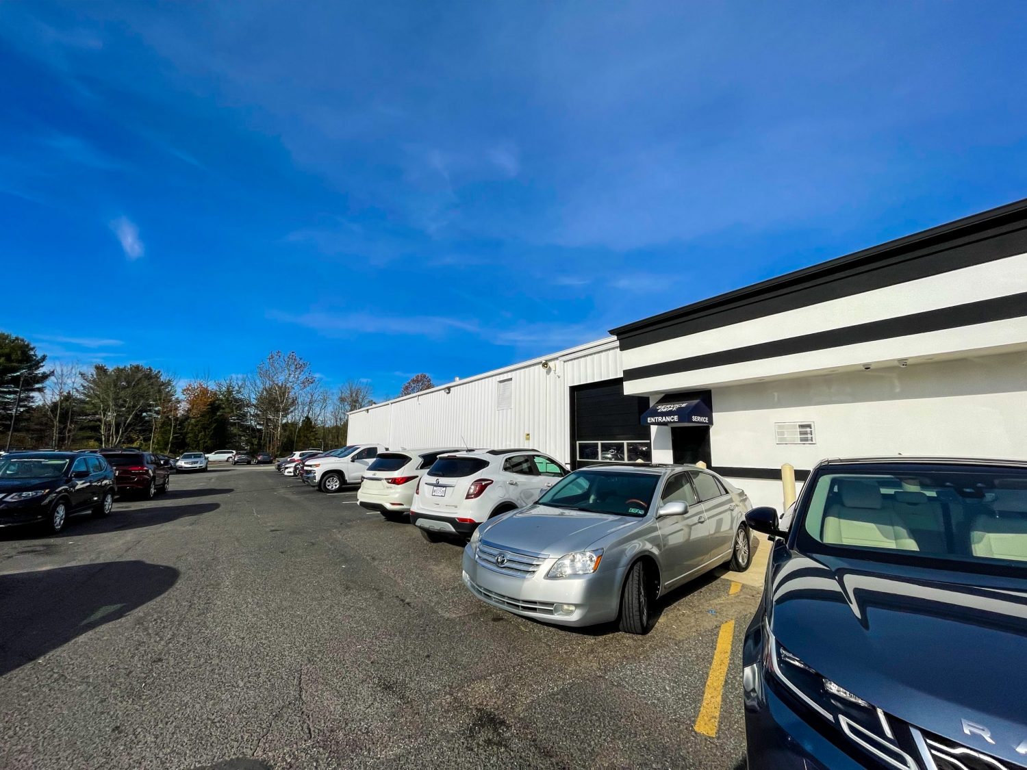 Coordination and communication with Apollo Auto Sales were paramount to completing this project. Depending on what part of the building we were working on, our crew would move vehicles away from the workspace. Additionally, we pressure washed the exterior and repaired the damaged stucco and broken vinyl siding before painting.