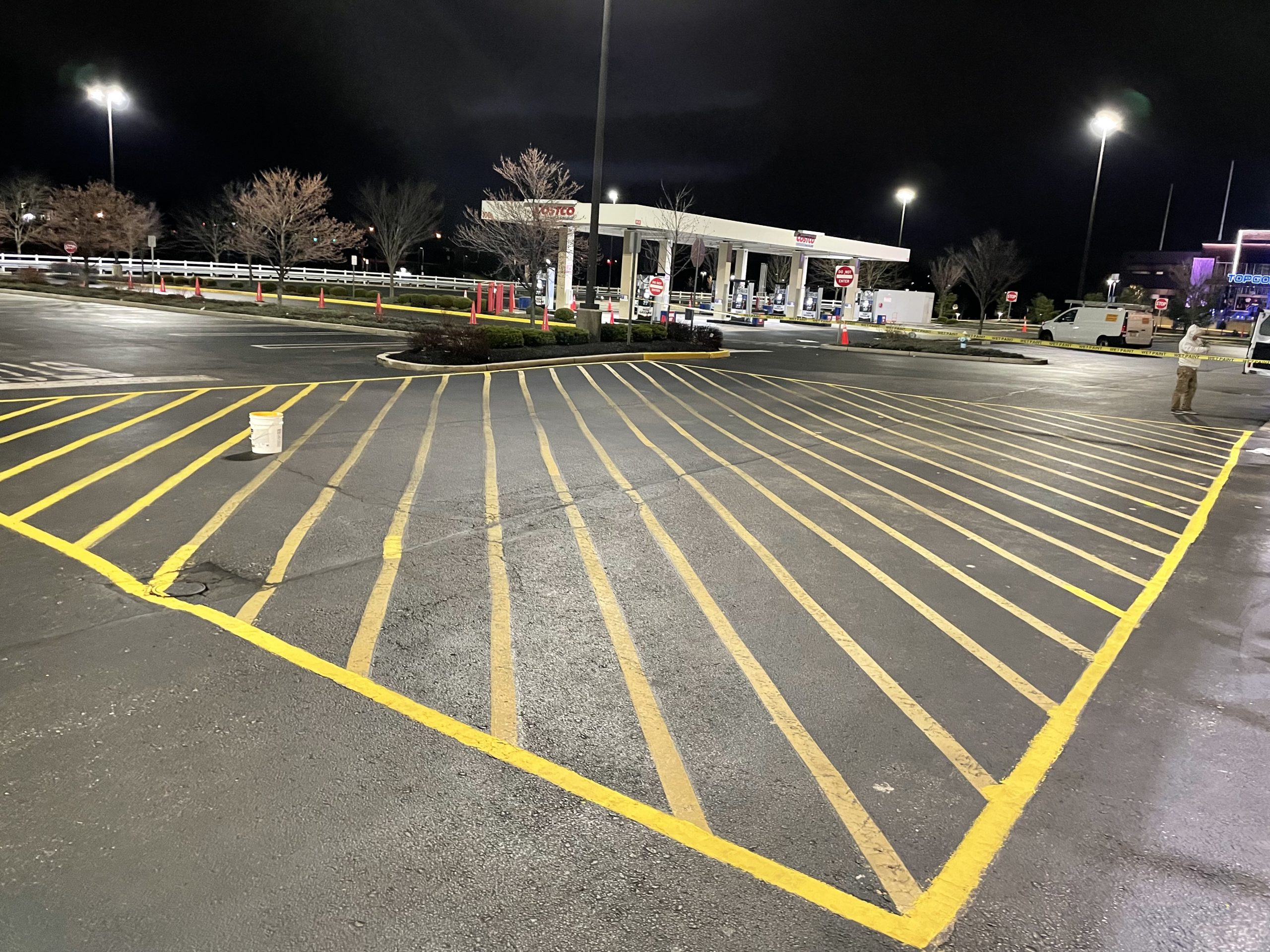 Costco parking lot intersection before CertaPro Mount Laurel repainting