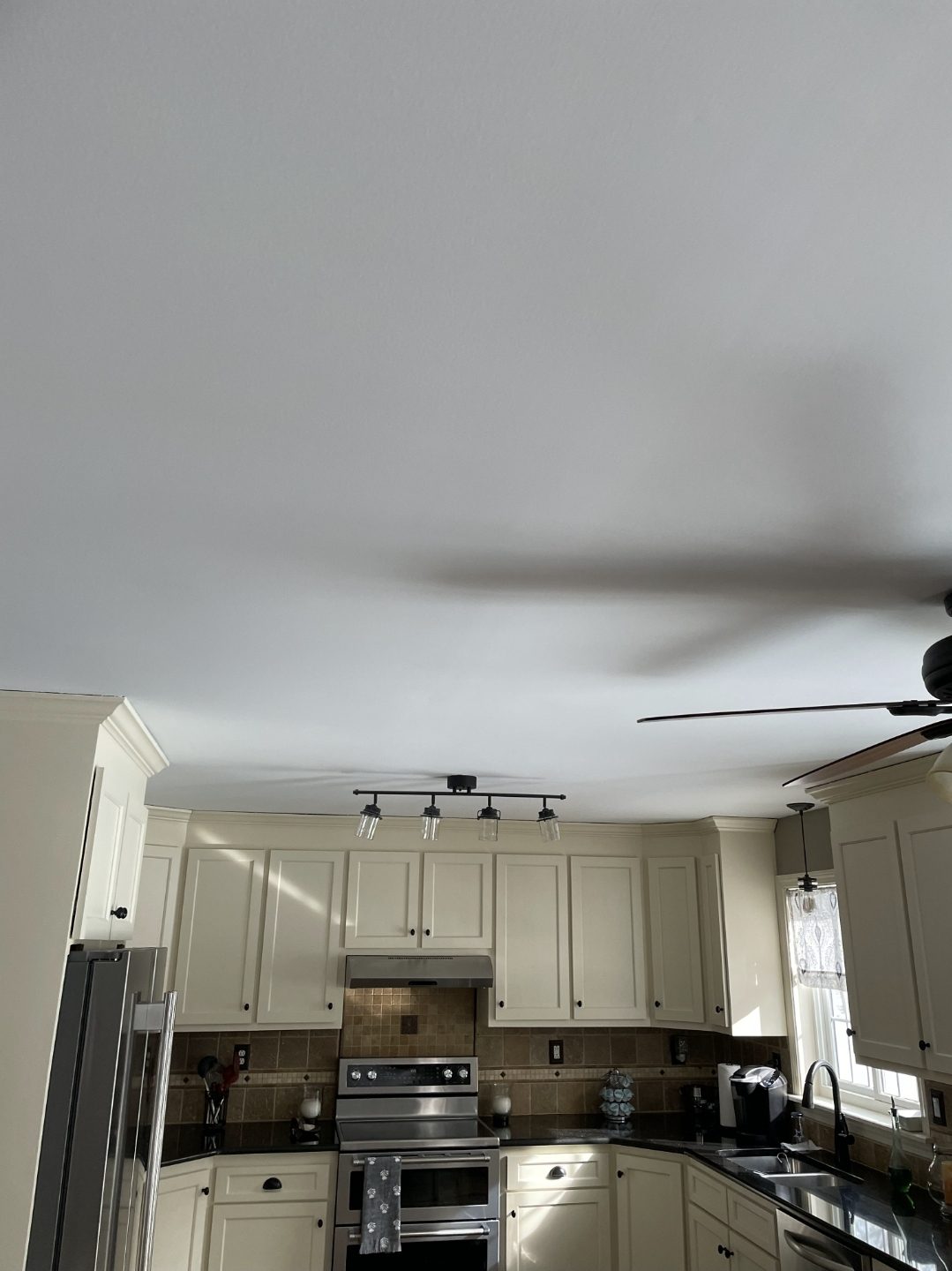 To complete the transformation, we apply a fresh coat of premium ceiling paint for a modern, polished look that enhances your home’s style.
