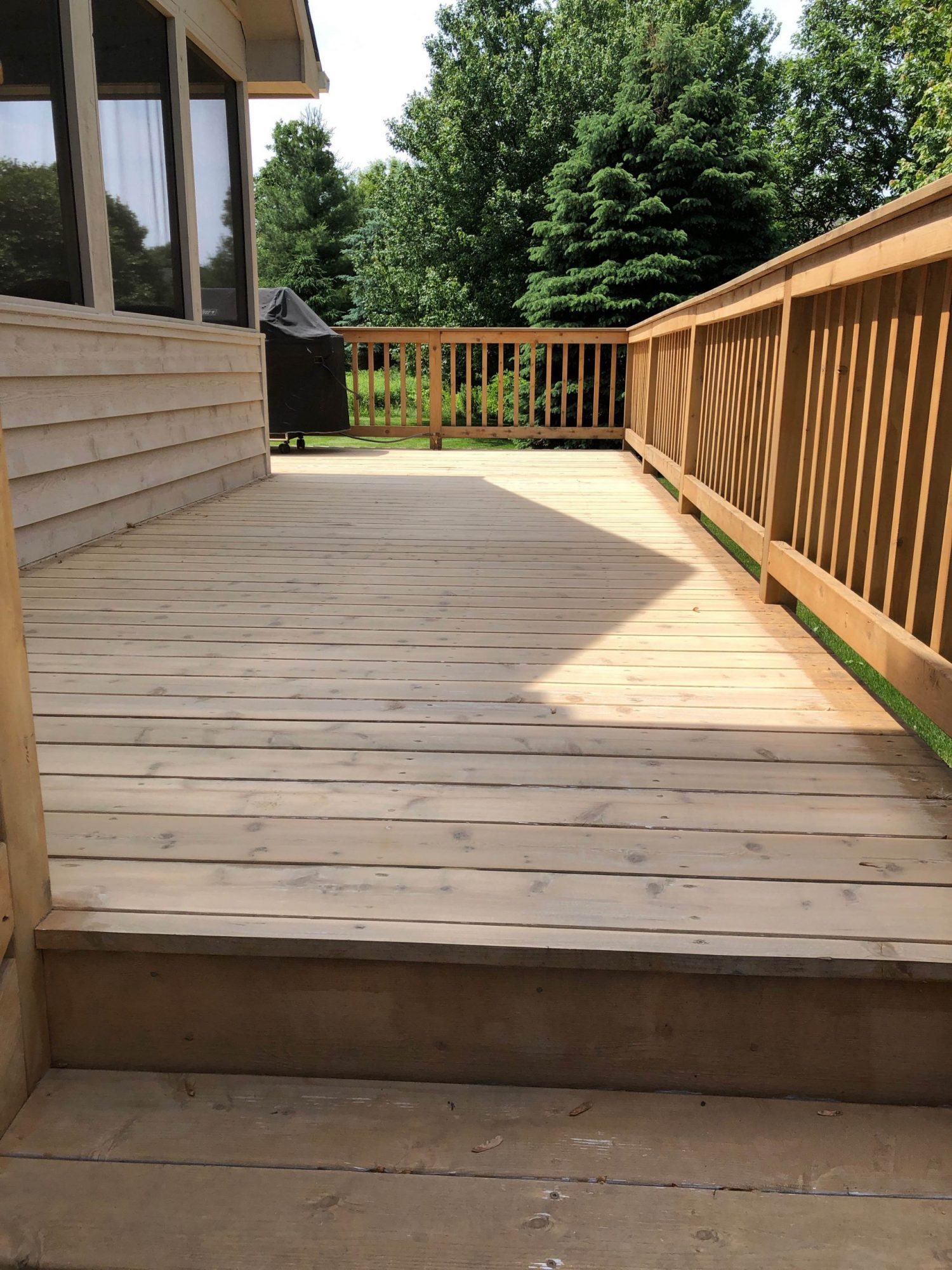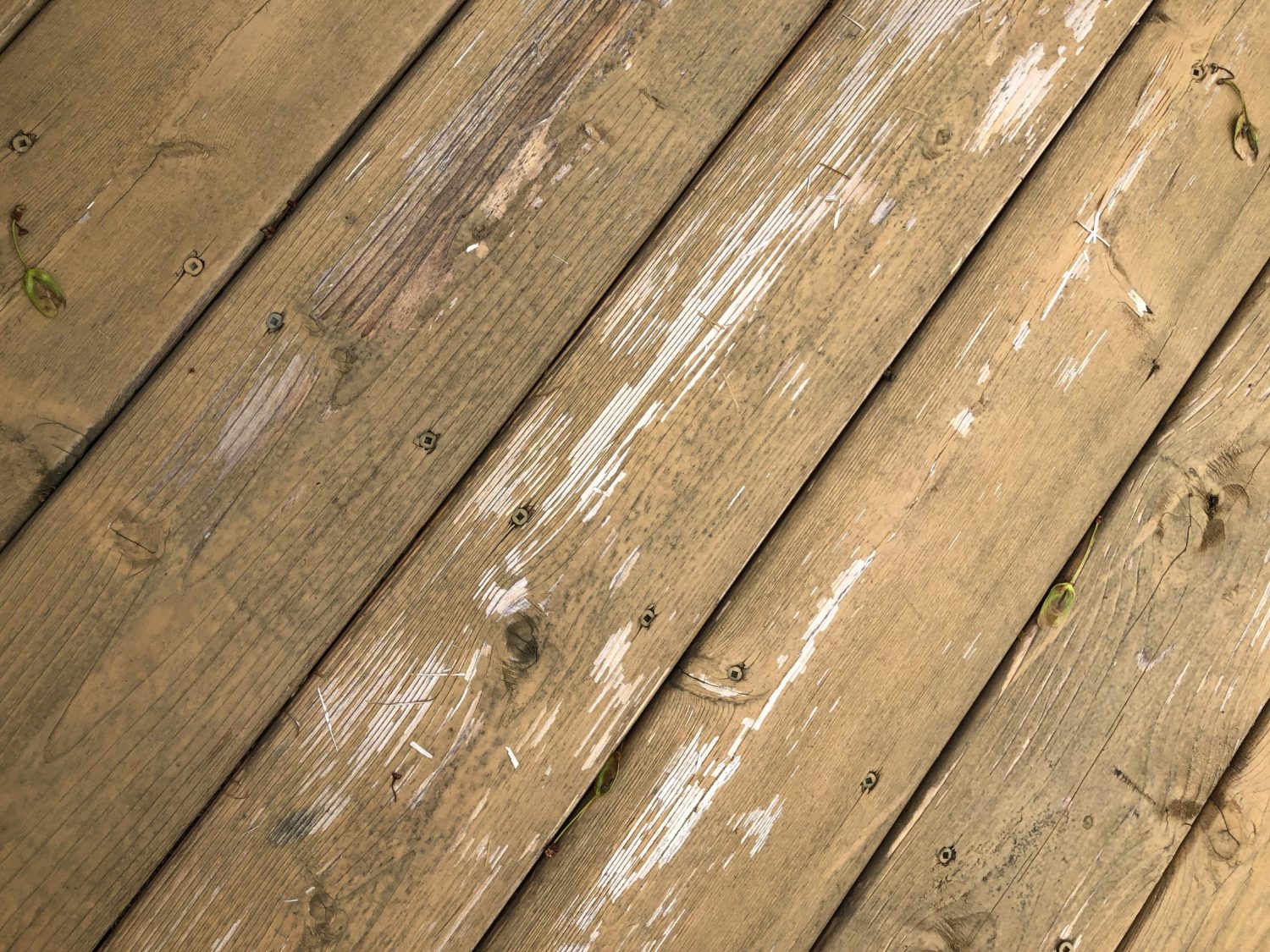 The original staining had been completed without properly preparing the deck to accept the stain. As a result, the original stain was “sitting” on the surface of the new smooth deck boards and did not penetrate the wood to allow for proper adhesion.