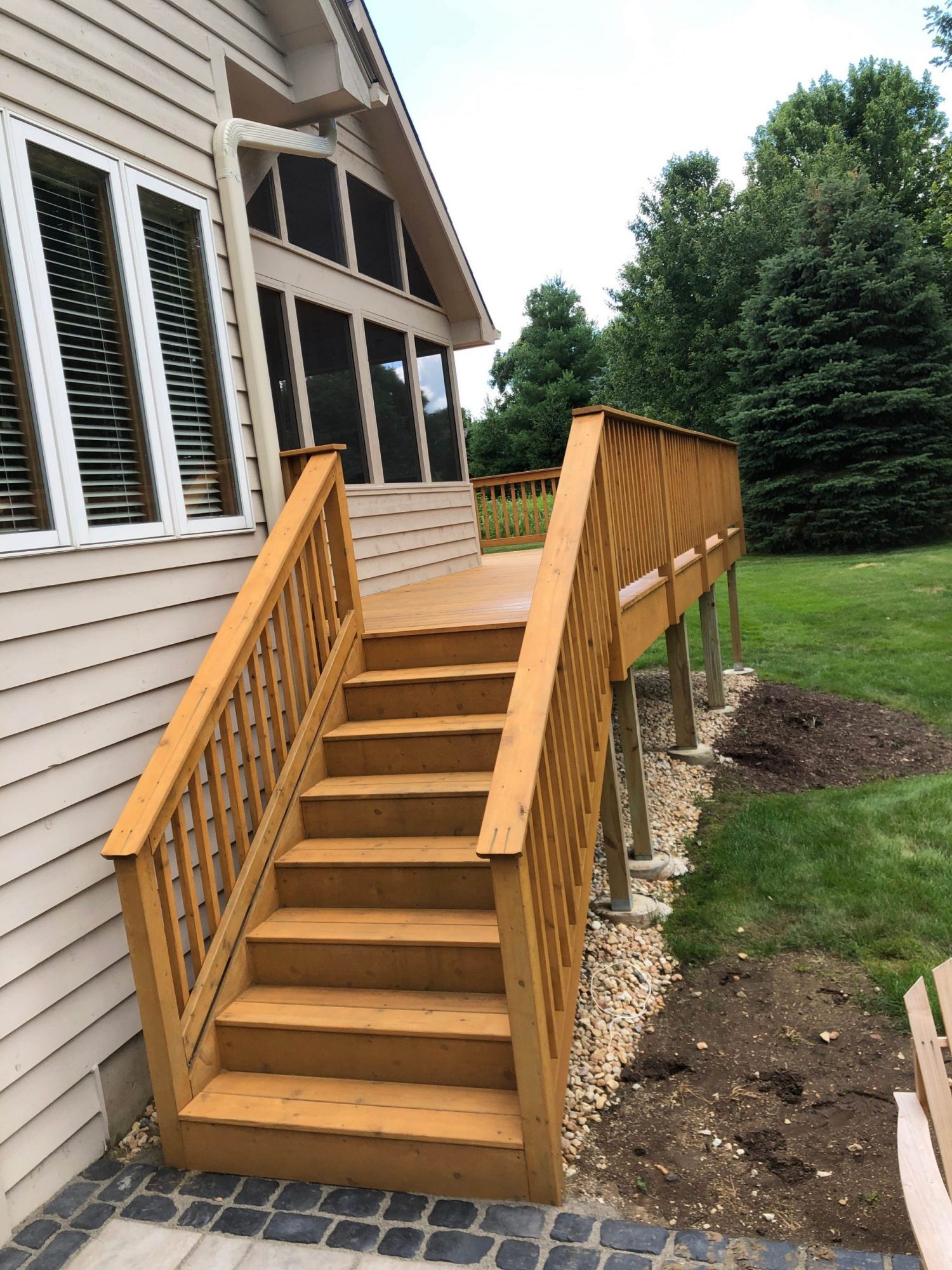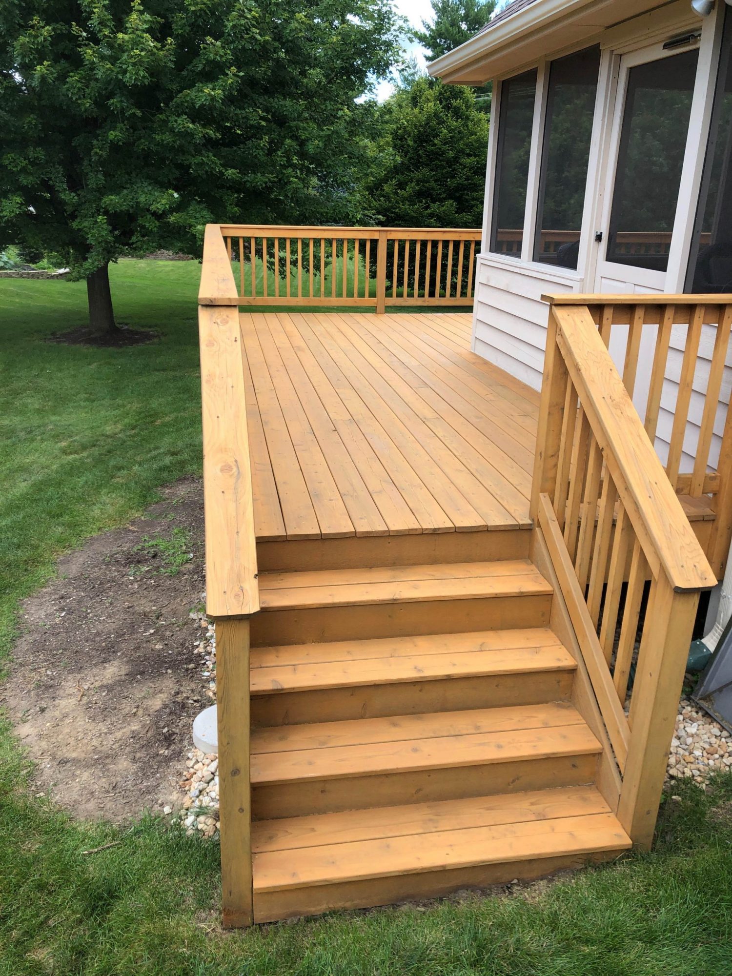 Our prior customer contacted CertaPro Painters of Naperville concerning the condition of his deck stain. Our customer had the deck built the year before by a general contractor who also stained the deck after installing. The following year the deck stain began to fail. After inspecting the deck, we determined sanding the deck to remove the failing stain and to prepare the surface to properly accept the new coating was necessary.