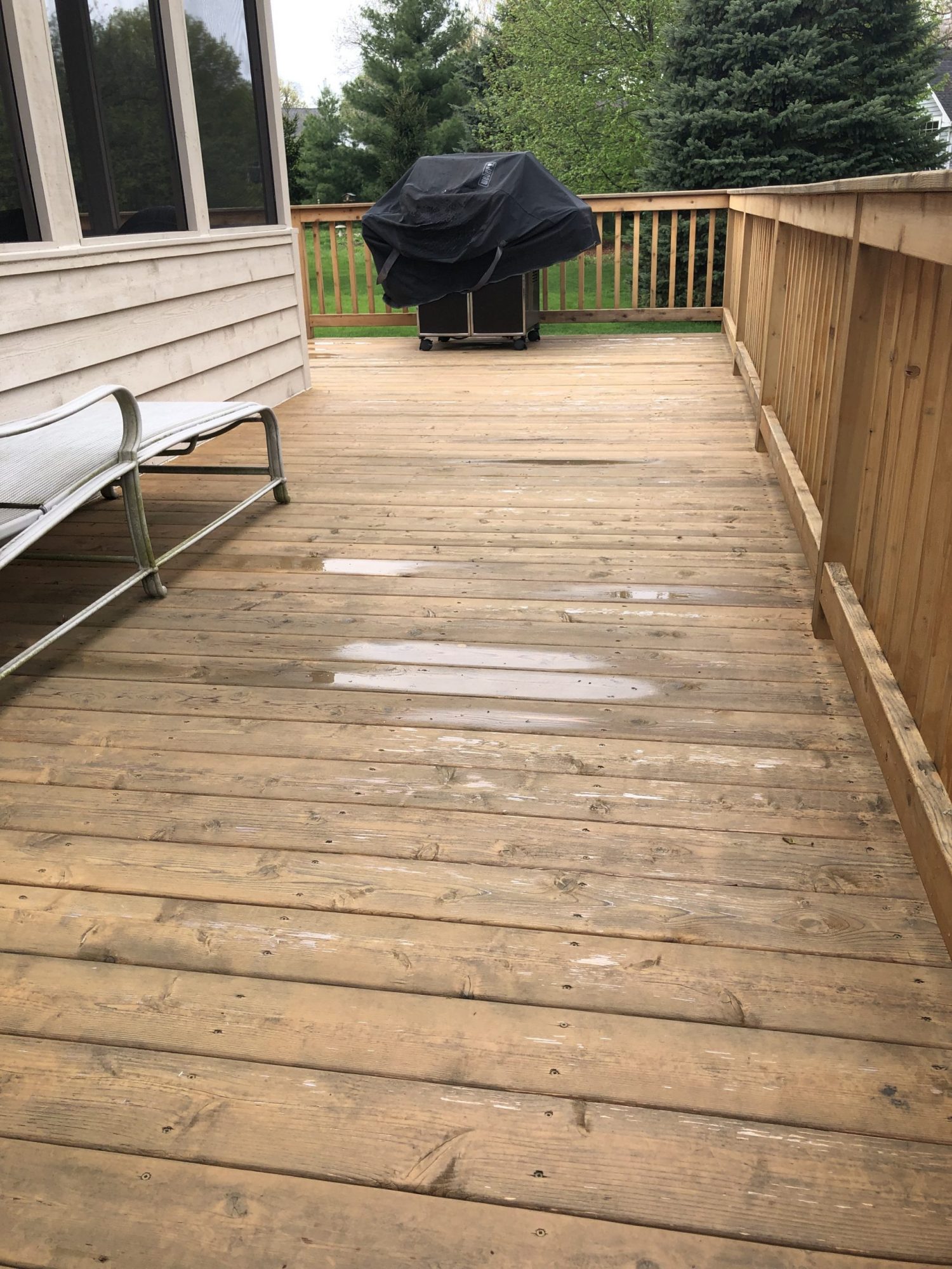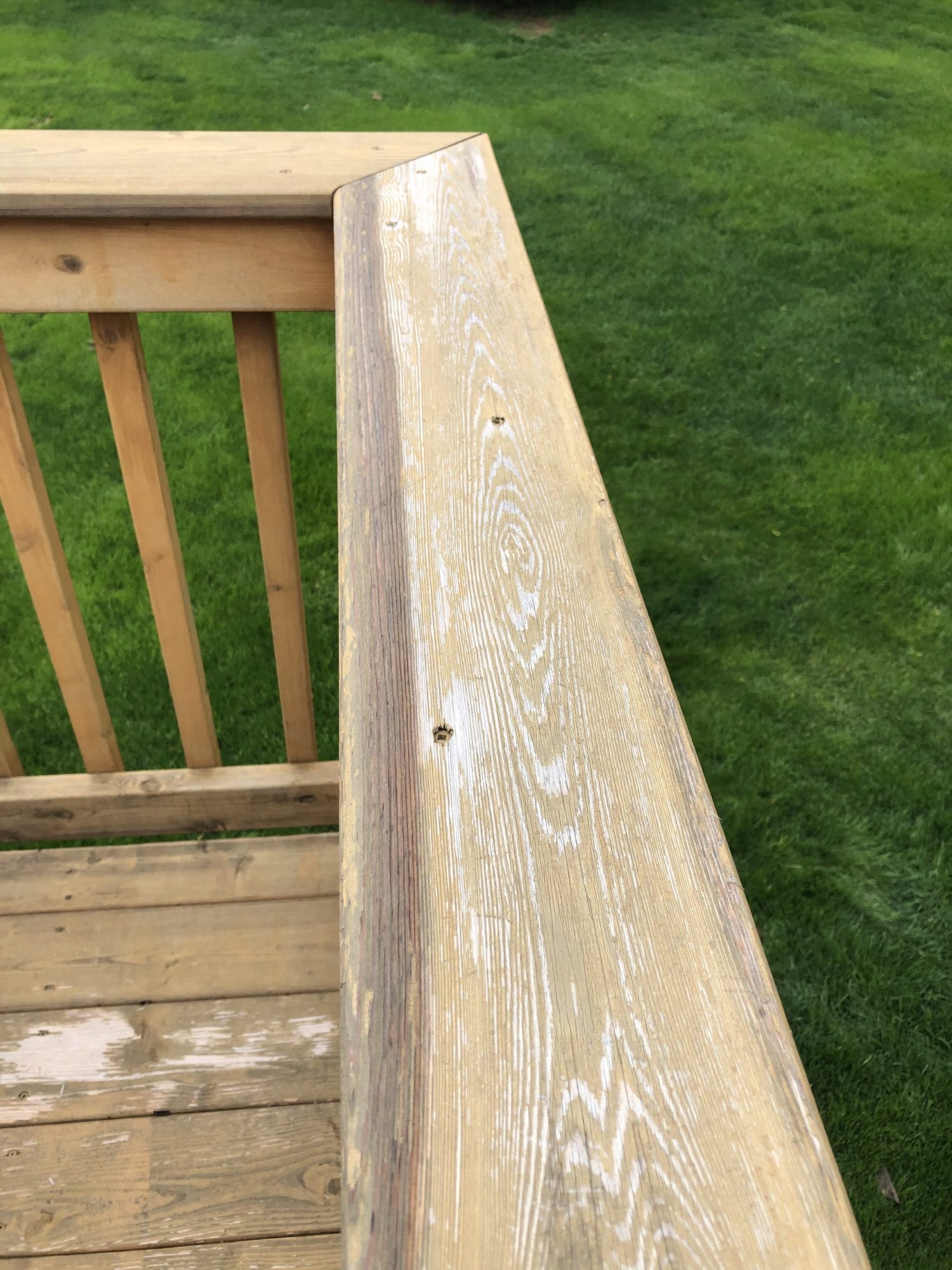The deck was showing signs of stain failure, leaving the wood open to water intrusion and rot.