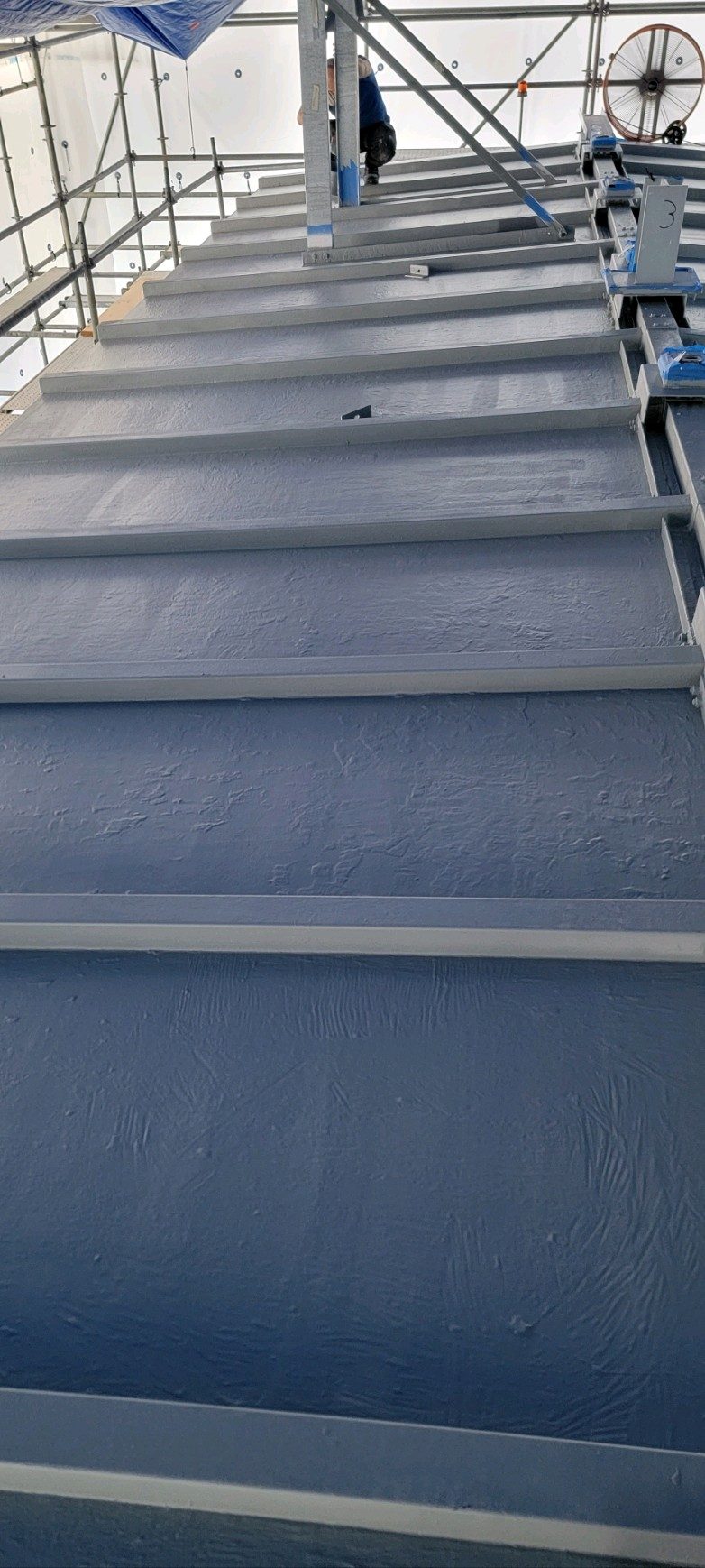 Process: The project involved removing all failing paint from a surface using grinders and cut off tools and applying a protective layer of primer on the surface each night during prep. Following surface preparation, 4 coats of Fire Rated paint from Contego International were applied and we followed specific fire rating guidelines to to be sure it was safe.