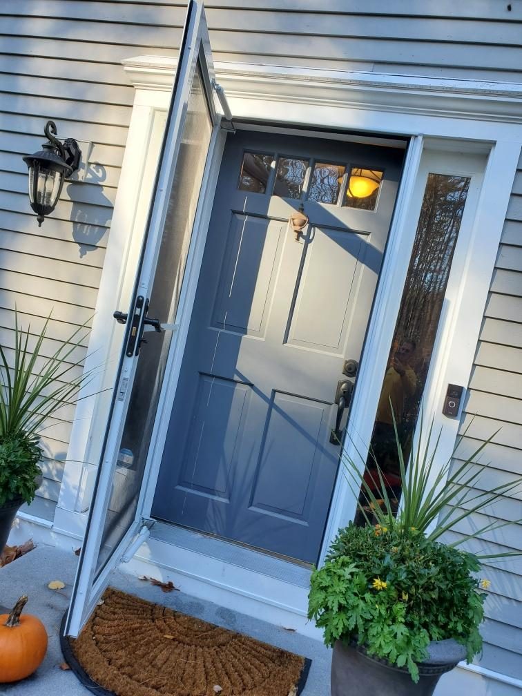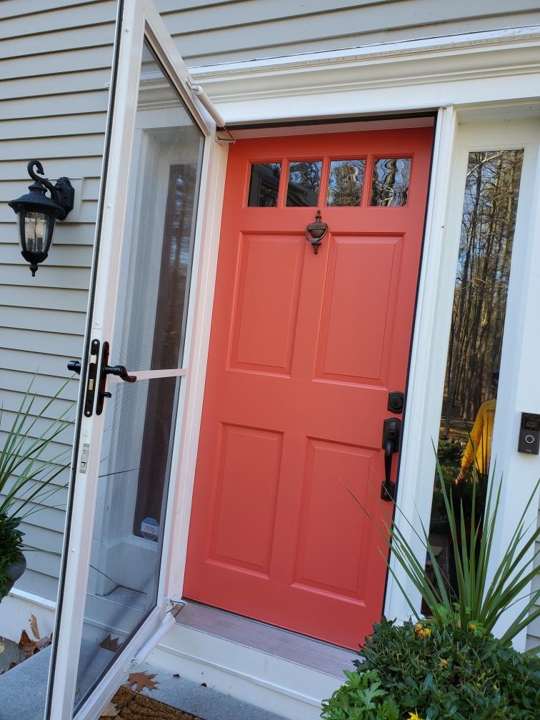 Click through to view the before image of this door. Our team painted it using Benjamin Moores’s color Raspberry Blush.