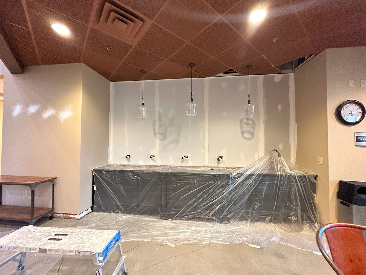 The facility was in the process of being remodeled. Several areas became scoped for a complete replacement of drywall.