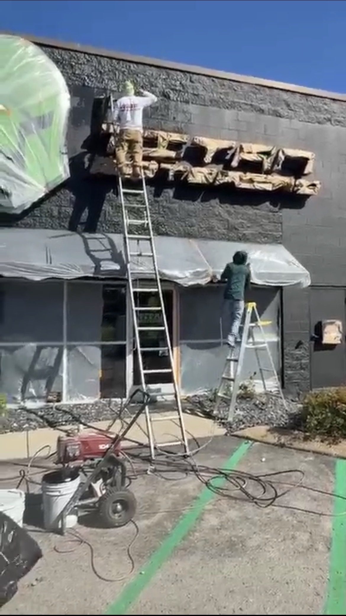 The building was in fairly good shop, just had a few holes in the concrete block we had to fill due to some old signage.