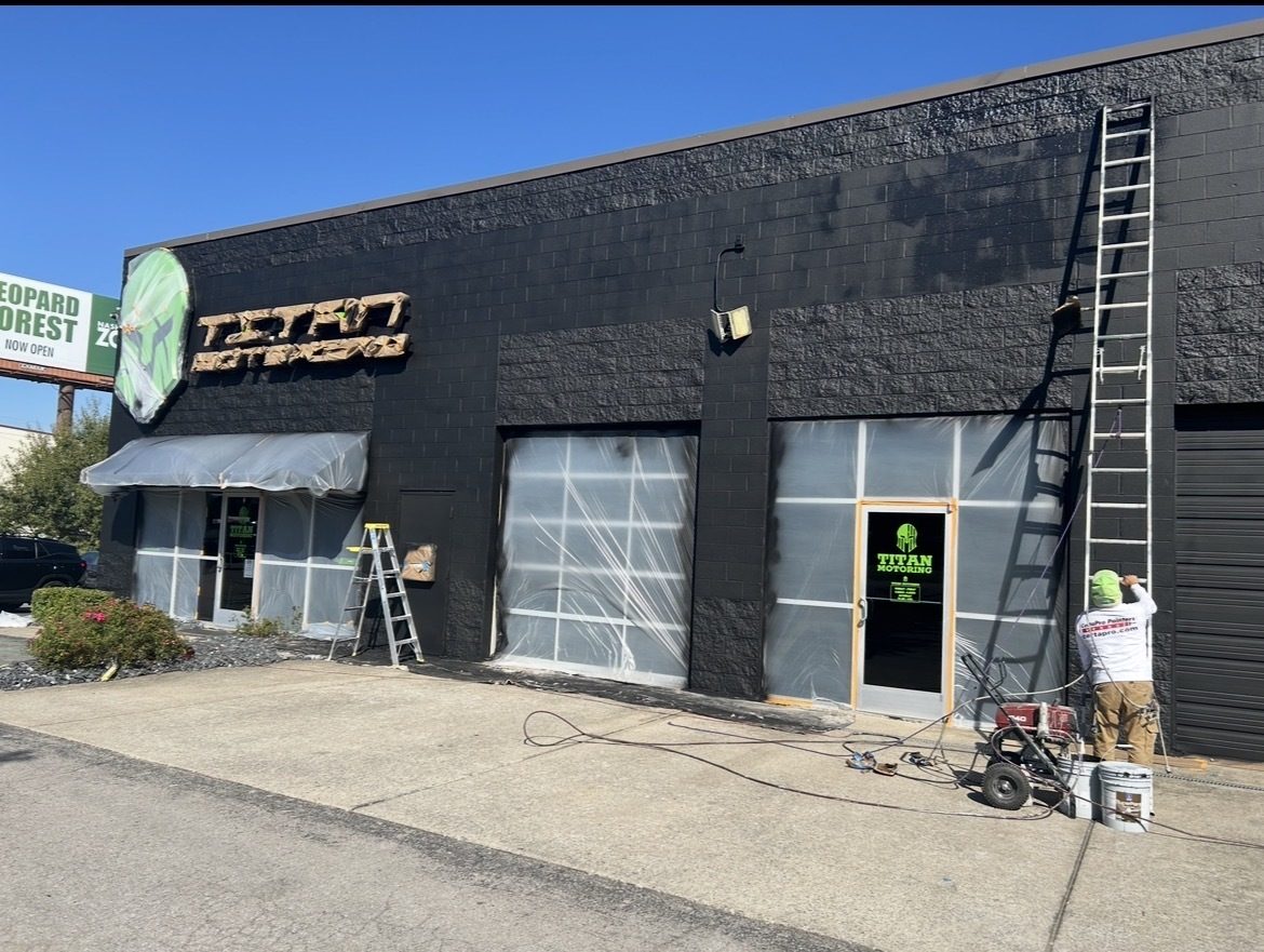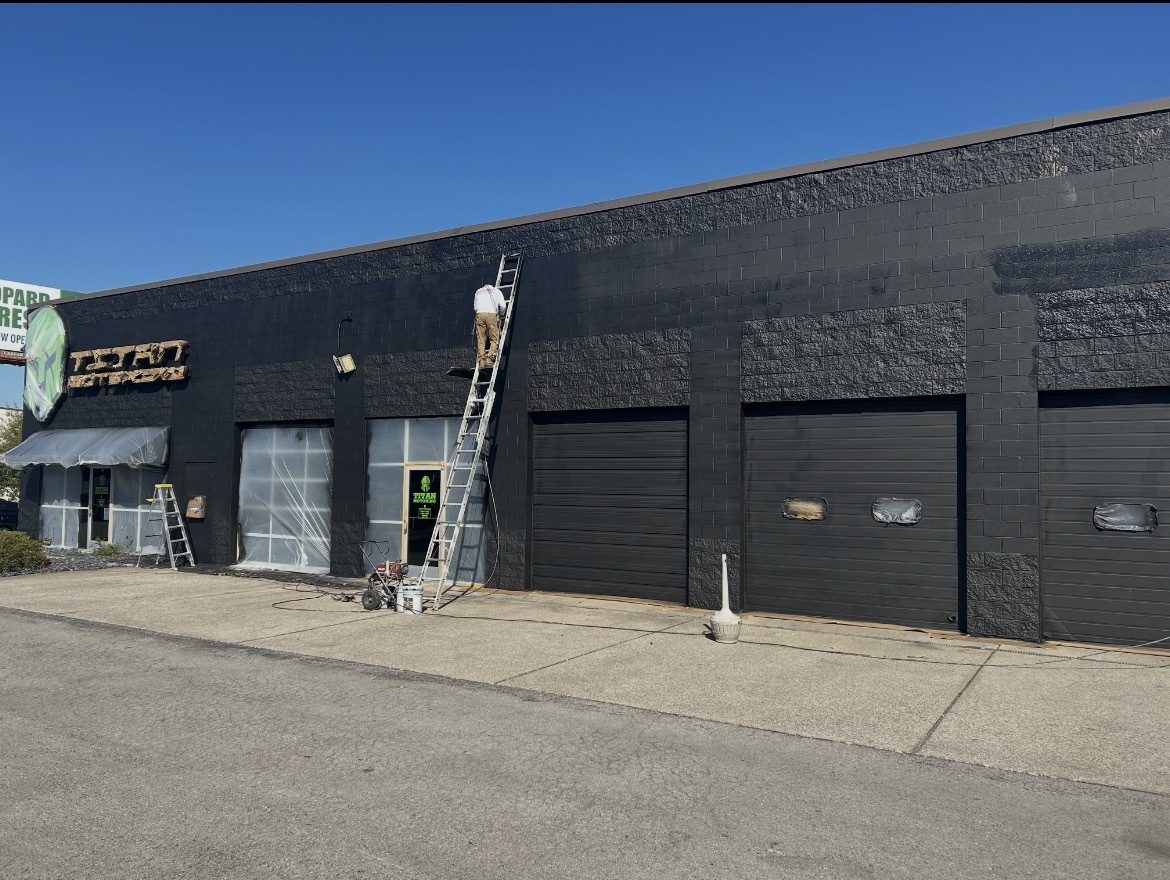 Our painting team recently renovated the exterior of Titan Motoring, a car performance shop in the Berry Hill Neighborhood. This project consisted of painting and concrete repair. We completed this project over the course of one weekend. You can learn all the project details below.