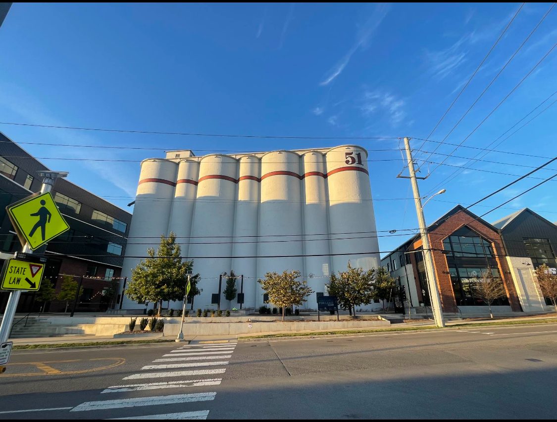 In October 2024, a painting project was completed on the historic Silos in West Nashville, TN, which are part of the city’s revitalized industrial area. The silos, 120 feet tall and 60 feet wide, are surrounded by a mix of restaurants, office space, apartments, condos, and event venues. Historically used to store grain in the early 1900’s, the local landmark is now home to an environmental services company.