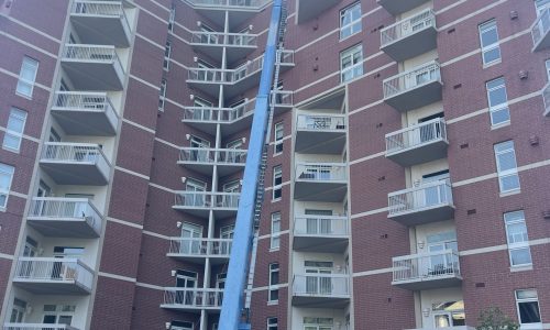 One of the main challenges was maneuvering lift equipment on sloped and uneven streets while ensuring compliance with city permits. The team used a 150’ boom lift and a 70’ atrium lift to access hard-to-reach areas, requiring skilled operation. Additionally, collaboration with Sherwin-Williams representatives helped address coating failures on the balconies by implementing improved prep work and using higher-quality products. Through strategic planning and expertise, the project was successfully completed, enhancing both the durability and appearance of the building.