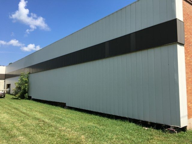 This project involved full prime of the brick with Loxon Masonry Primer, followed by Multi-Surface Acrylic to all brick and concrete block walls. Damaged areas of concrete block were repaired and replaced before priming and painting. Rotten wood fascia located along the roofline was replaced. We painted Multi-Surface Acrylic to the smooth metal siding, with a separate gold color for the stripe, and a separate white color for the entryway siding. We also painted the corrugated metal siding, window fascia on the main office, overhead doors and frames, man doors, downspouts, metal staircases, and corresponding handrails, metal awnings, dock levelers, and steel bumpers, upper-level windows, upper-level plexiglass, bollards, and front sign posts.