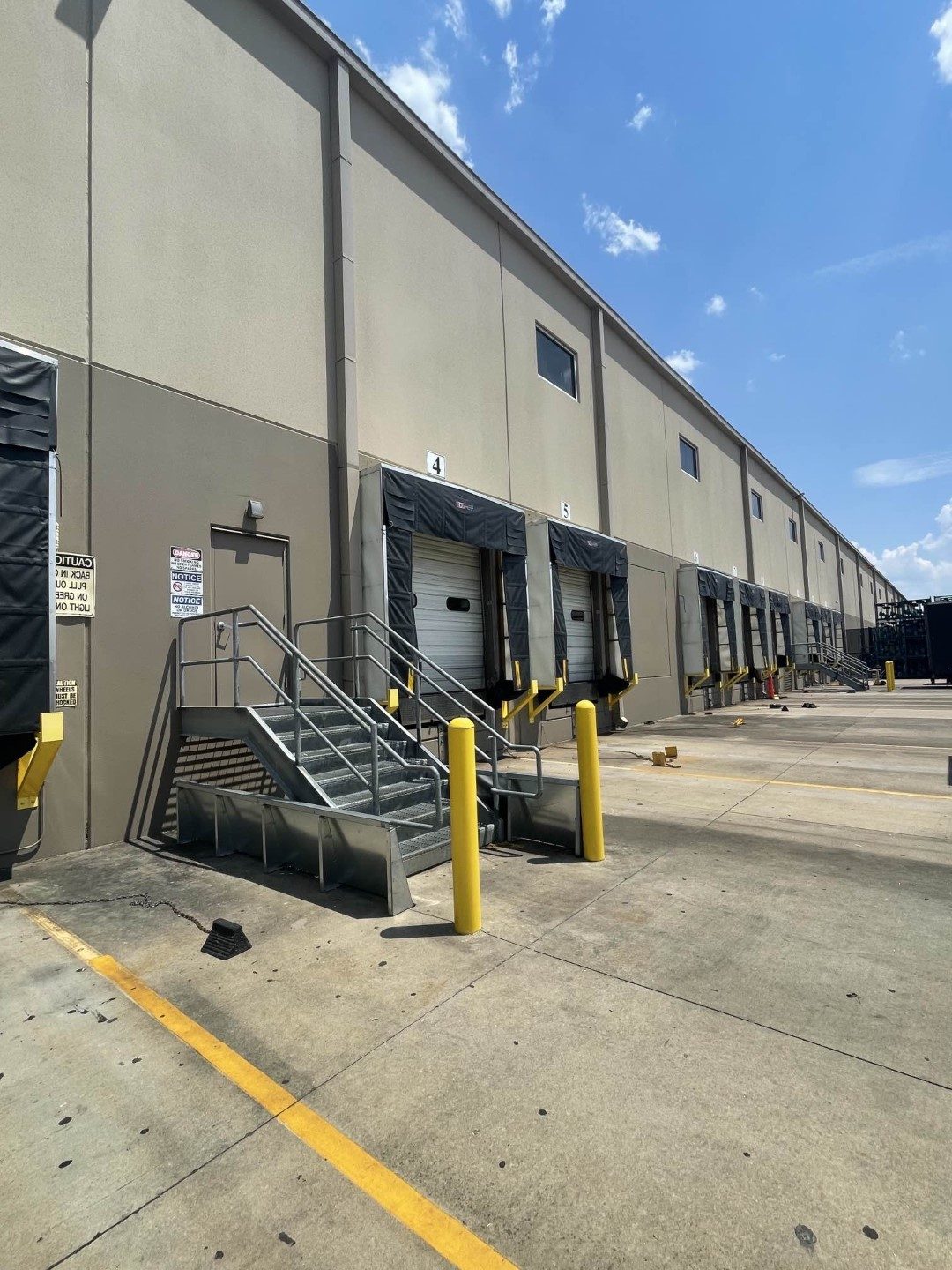 One of the main challenges of this project was working around the active operations of the tenants. Careful coordination was required to allow normal business functions to continue while completing the work efficiently. The team managed logistics such as clearing trailers from loading docks, relocating staged materials, and adjusting schedules around employee parking and tenant off-days for better accessibility. Additional obstacles included ensuring reliable water access for the painting process, matching the new paint colors to the existing siding, and securing the appropriate aerial lift equipment to navigate around mechanical installations, railings, and fences.