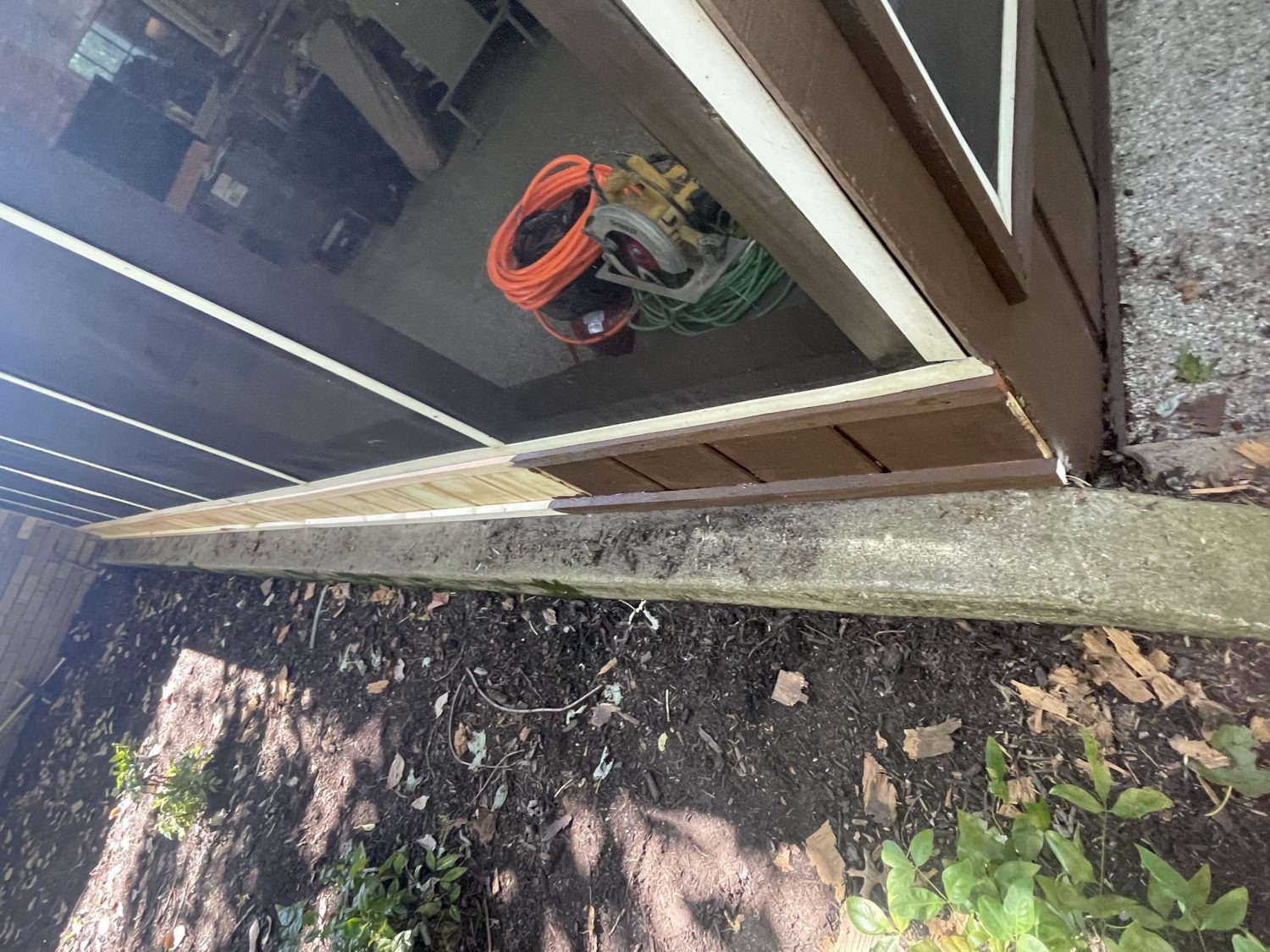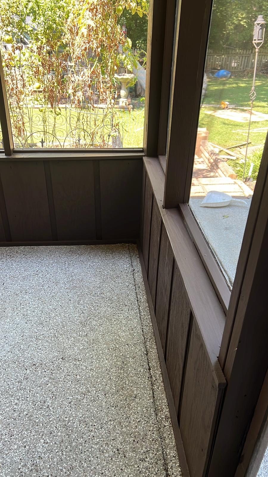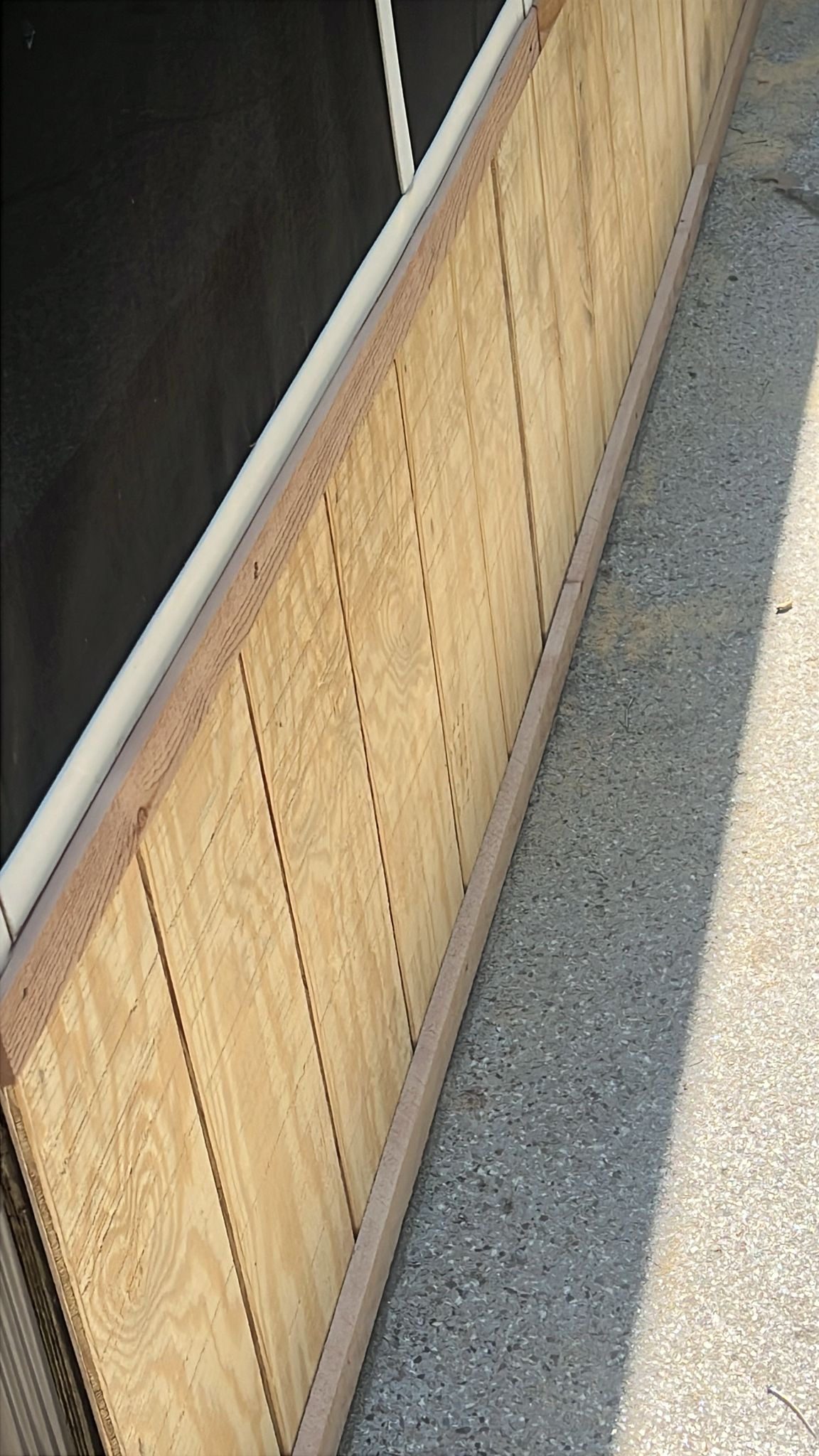 Removal and replacement of the window screens and door screens. We also sealed and replaced the wooden paneling to keep the water from failing one of the sides of the porch.