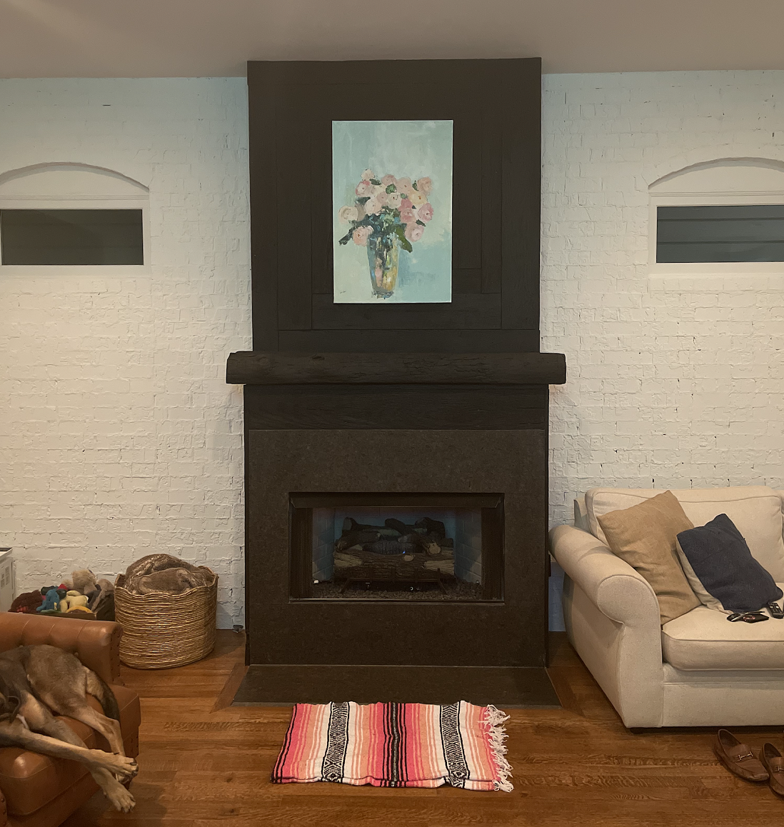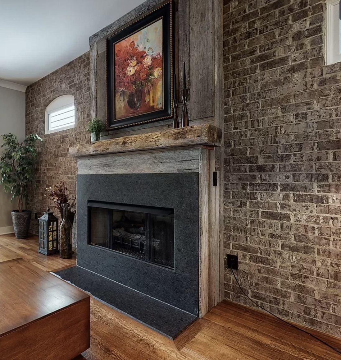 Not sure what to do when something isn’t clicking just right but you know it needs a change? Our representatives bring a host of experience in helping you determine the best solution. This customer is thrilled with the black stained fireplace against a freshly-painted brick in white!