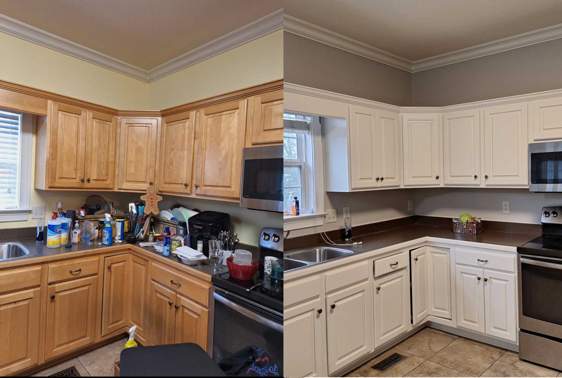 Customer like to give her house a update modern looks. She haven’t done anything at her house in years. We paint the house completely except for the bedrooms upstairs. But the biggest change was done at her kitchen cabinets.