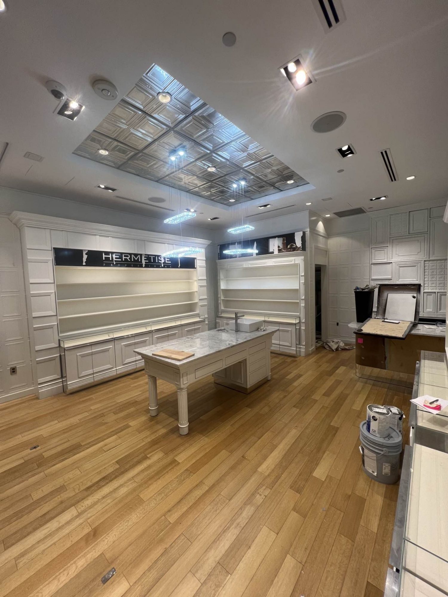 The experts at CertaPro Painters® of Nashville and Middle Tennessee, transformed this store in an upscale shopping mall from its outdated brown color scheme to a stunning and modern white.