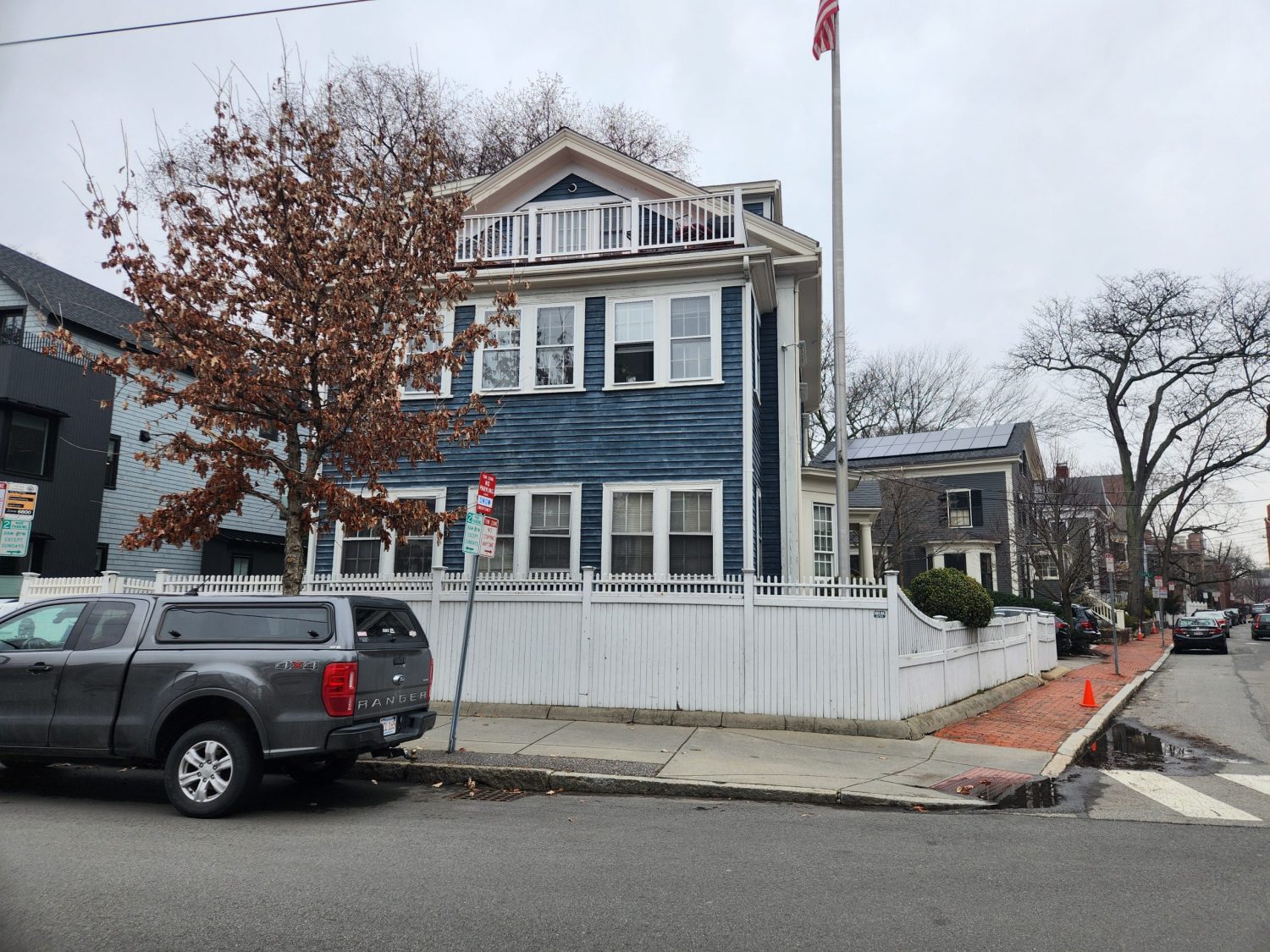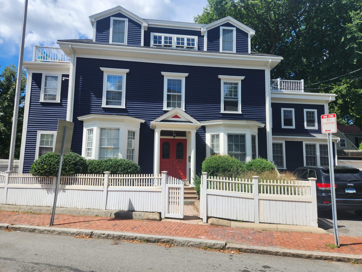 The project involved the heavy prep and re-painting of the entire building in the same historical navy blue.